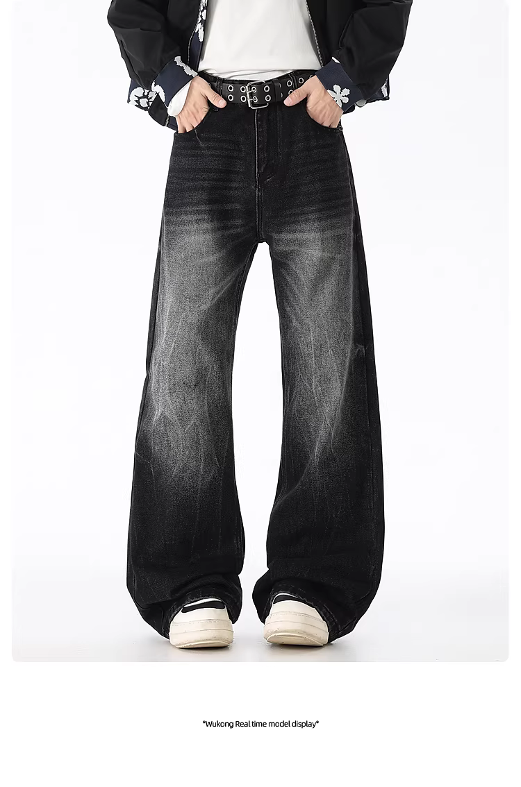 Ngộ Không có sẵn quần jean nam kiểu Mỹ, dáng thẳng, chất liệu washed, ôm vừa vặn, rộng rãi, đa năng, ống rộng, dài chạm sàn.