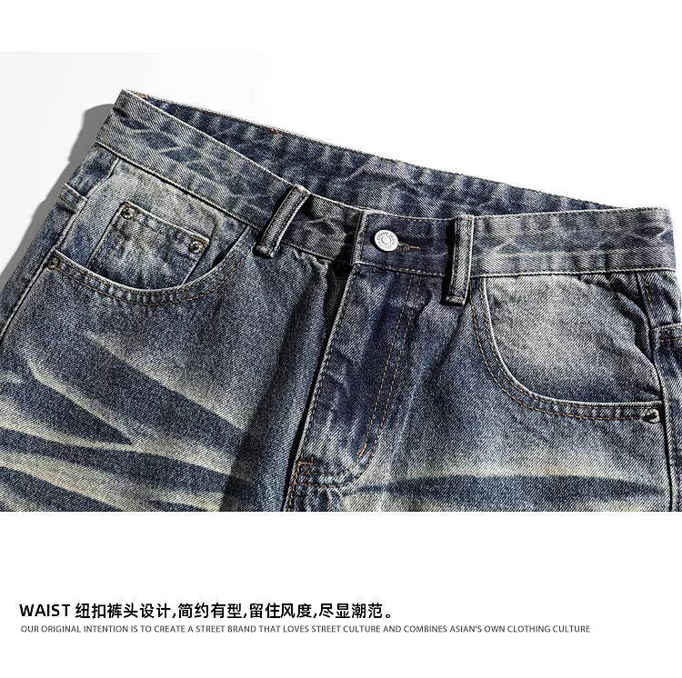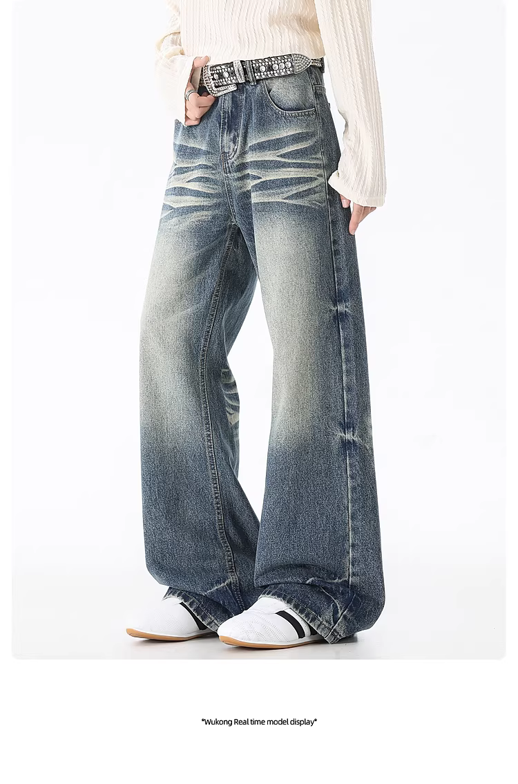 Ngộ Không có sẵn quần jean nam ống thẳng kiểu Mỹ, phong cách đã qua xử lý làm cũ và rách, dáng rộng, thời trang, đa năng.