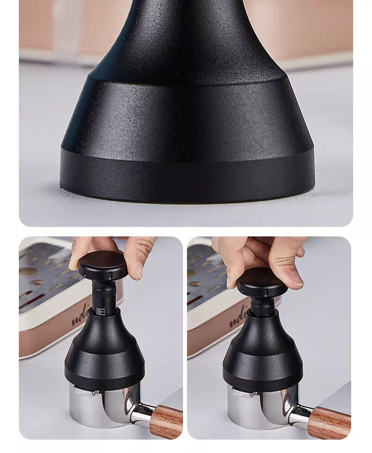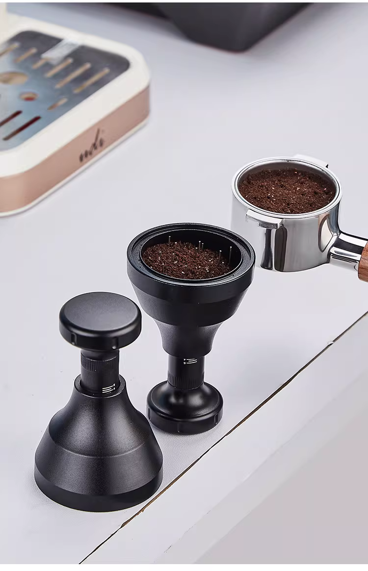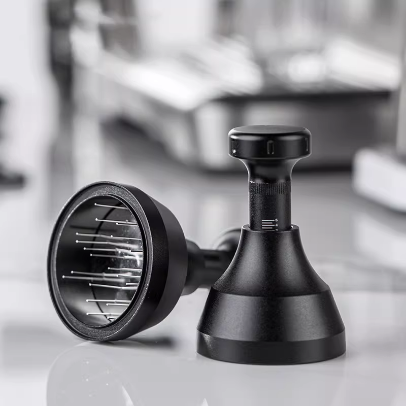 - Nhấn và xoay kim phân phối dạng kim để phân tán đều các cục bột cà phê, thích hợp cho tay cầm máy pha cà phê espresso 51/53/58mm.