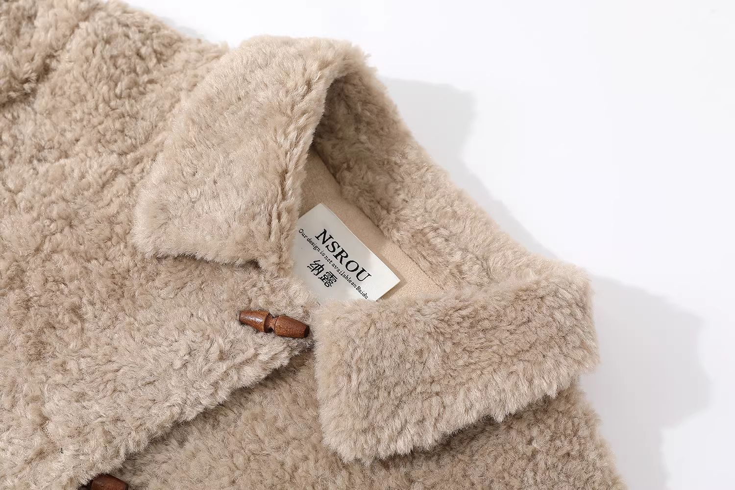 - NSROU Áo khoác len cừu cao cấp phong cách Hàn Quốc lấy cảm hứng từ Chanel dành cho nữ, mùa thu đông, áo khoác ngắn thanh lịch dành cho người nhỏ nhắn.