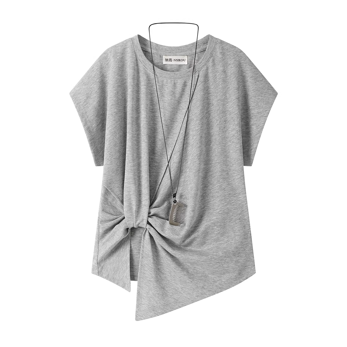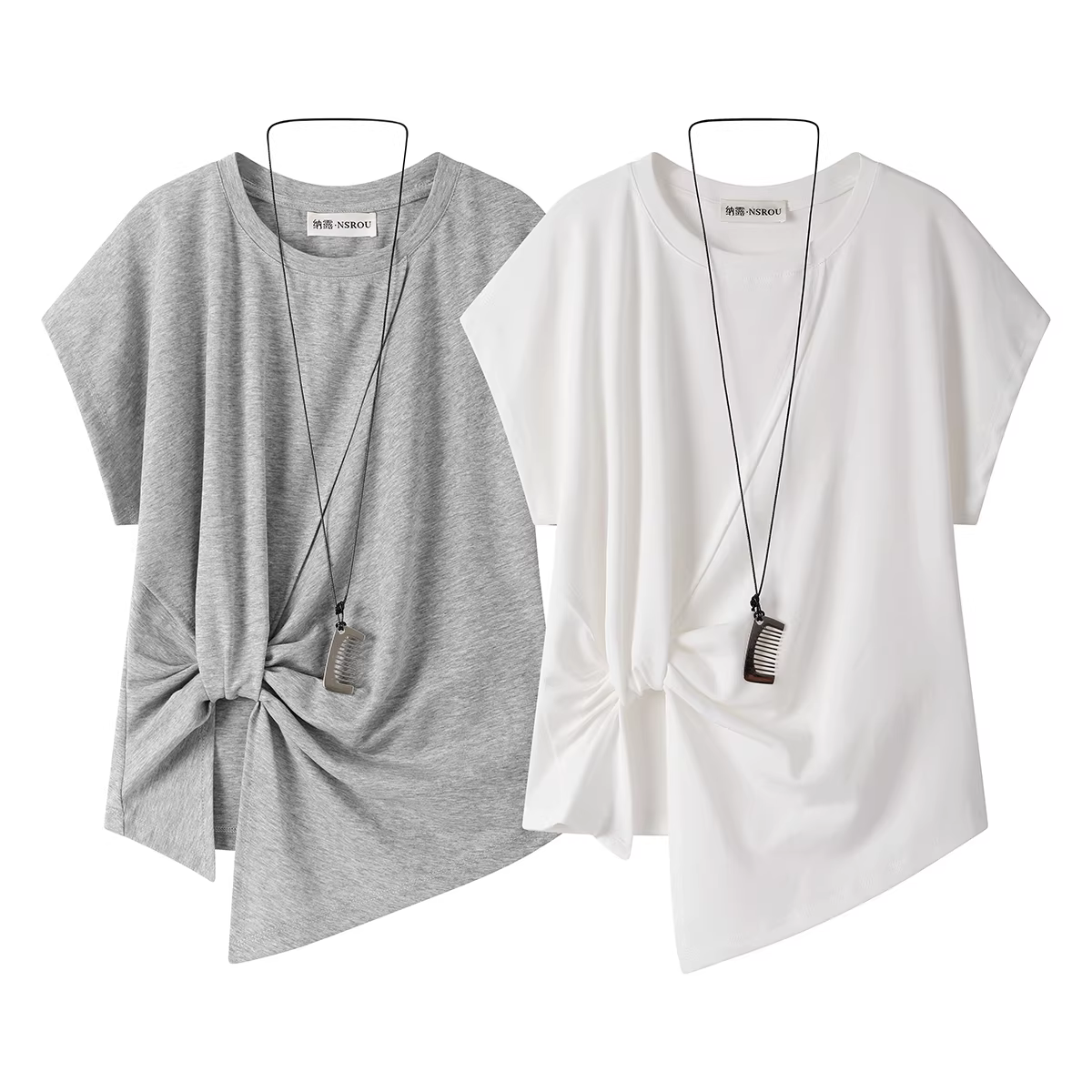 NSROU Áo thun ngắn tay thiết kế hàn quốc dành cho nữ mùa hè phong cách mới xếp ly bất đối xứng thời trang hàng đầu