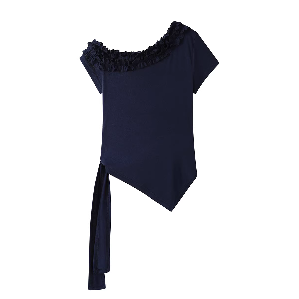 NSROU Áo thun ngắn tay trễ vai kiểu Pháp có dây buộc kiểu Pháp dành cho nữ thiết kế mùa hè mới áo trễ vai kiểu dáng độc đáo