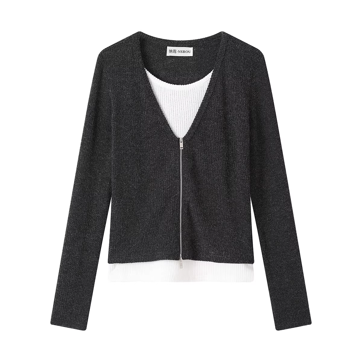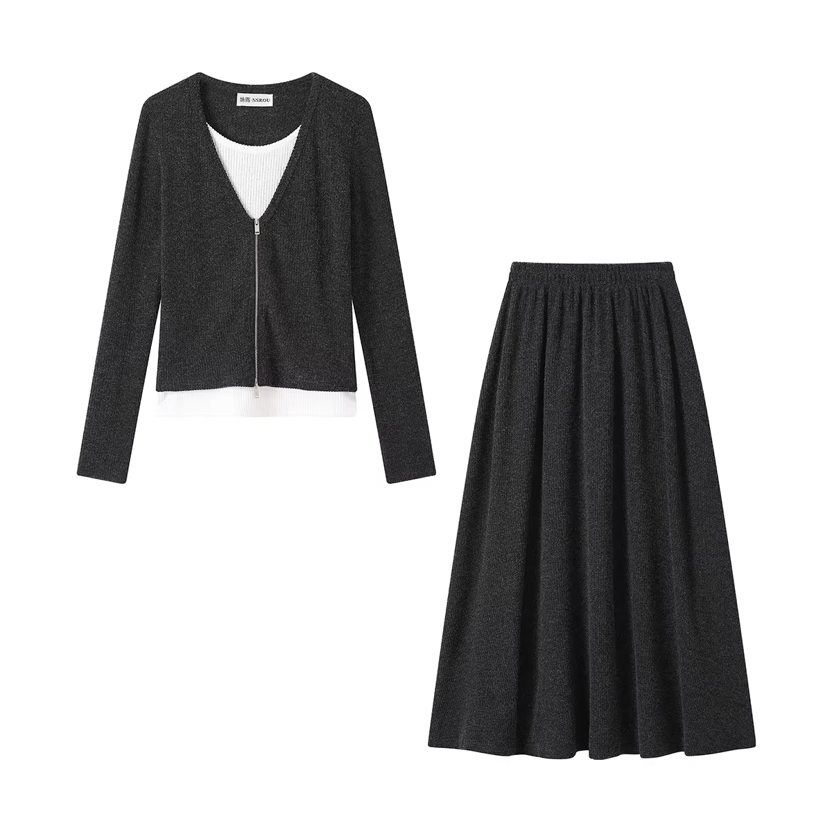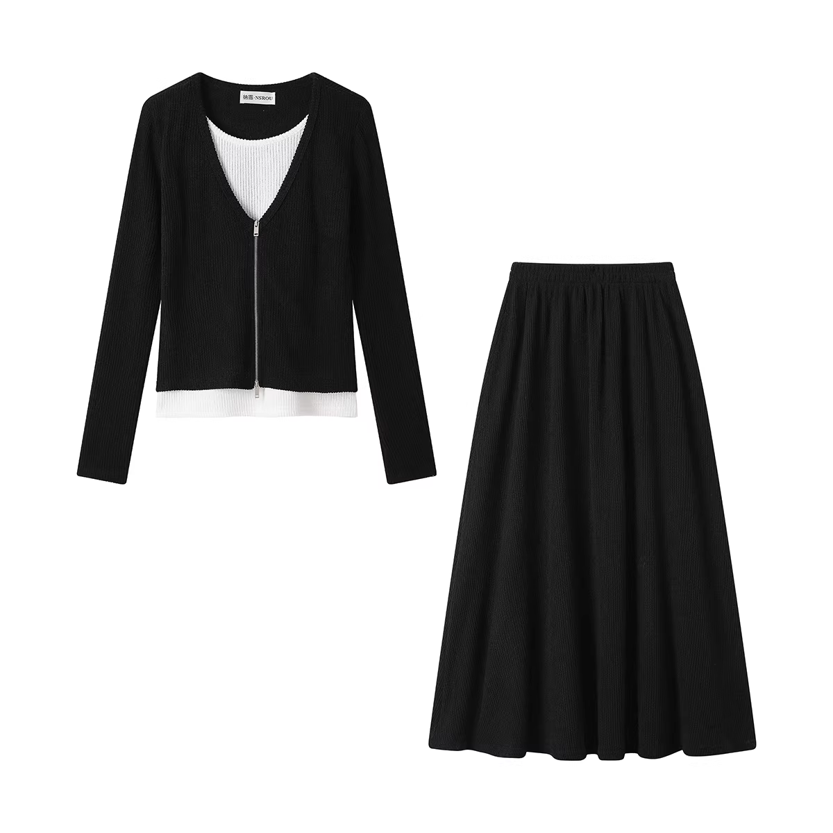 - NSROU Bộ áo cardigan dệt kim giả hai mảnh kiểu Pháp giản dị dành cho nữ mùa thu và váy