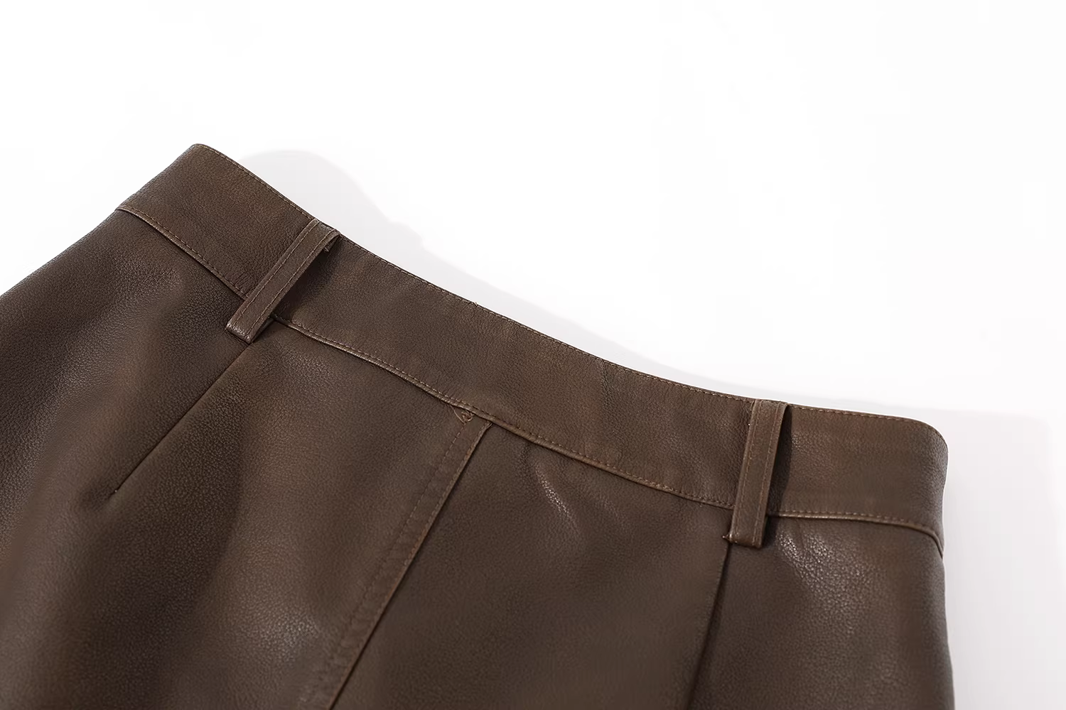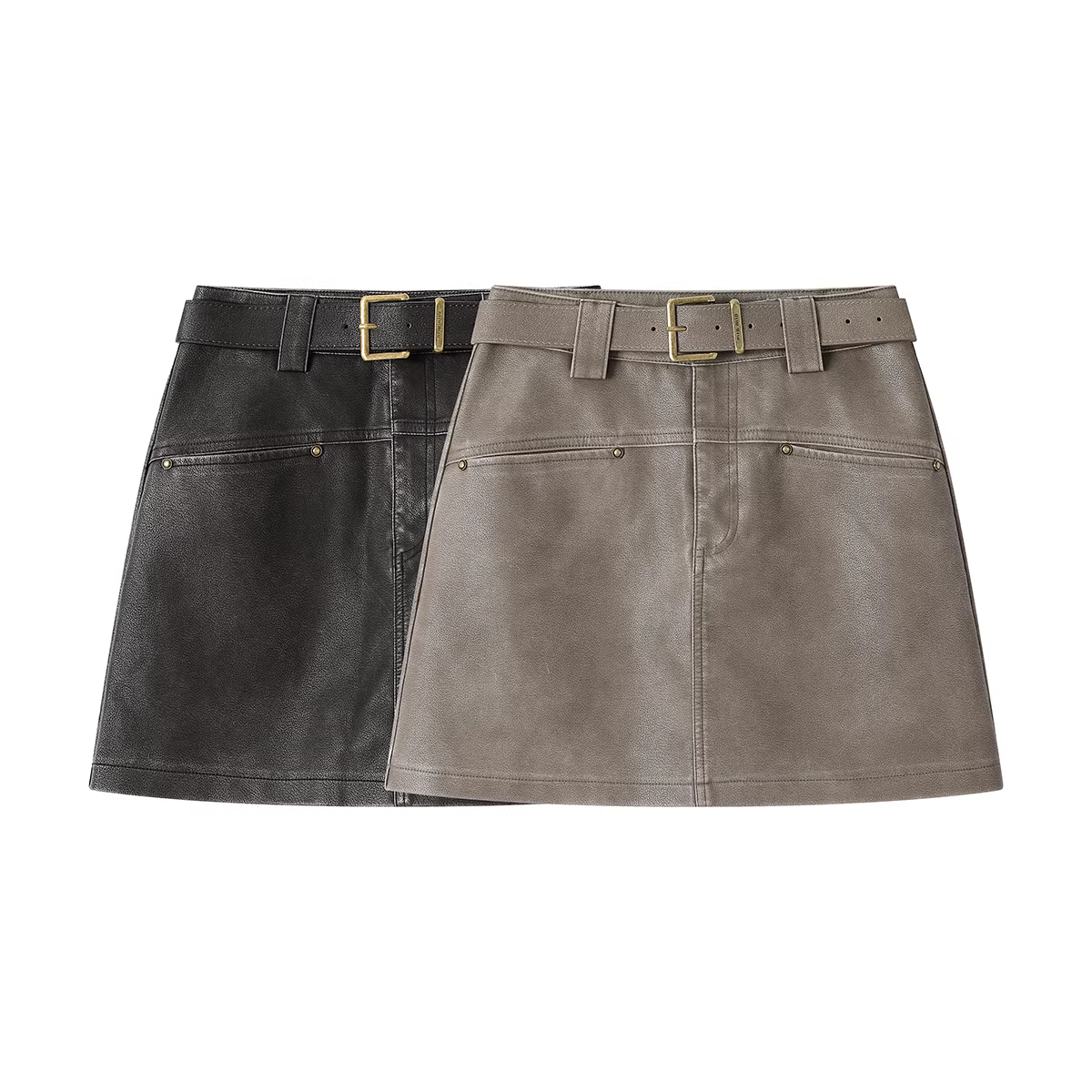 - NSROU cao cấp phong cách retro hot girl váy da chữ A eo cao giảm béo váy ngắn bodycon mùa thu dành cho nữ