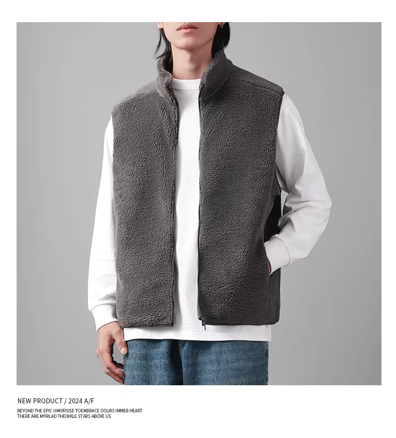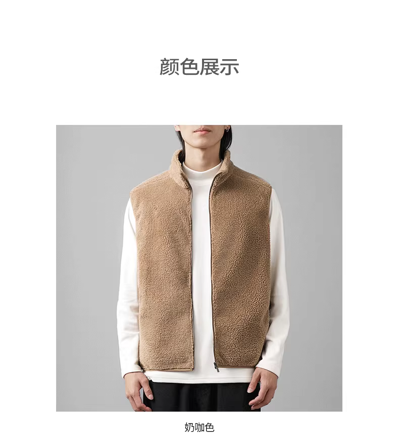 - OMZM nam len cừu áo vest mùa đông ấm áp lớp bên trong áo vest lót lông cừu dày dặn áo khoác không tay cổ đứng