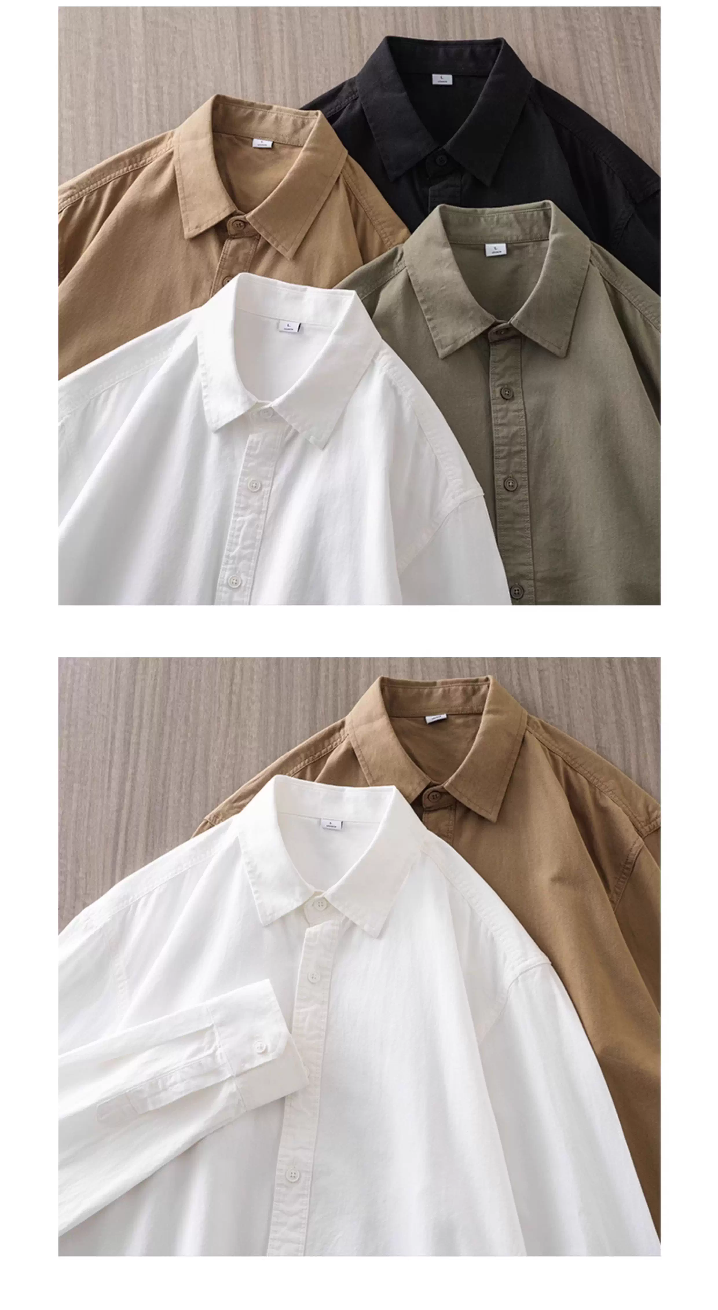 - OMZM350G hạng nặng nguyên chất cotton áo sơ mi nam dài tay xuân thu cổ điển có ve áo áo sơ mi trắng cao cấp áo khoác thường ngày