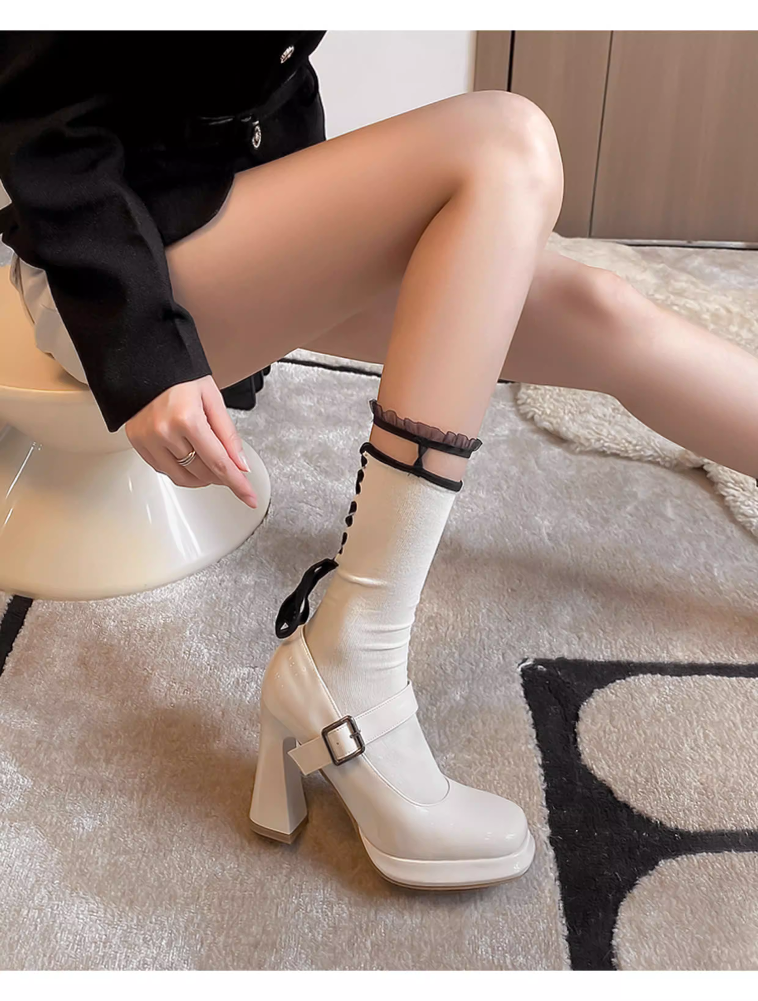 - Pear Xiaoqi~ Giày cao gót mũi vuông kiểu Pháp thanh lịch dành cho nữ, giày đế dày có quai đơn, giày Hepburn Mary Jane.