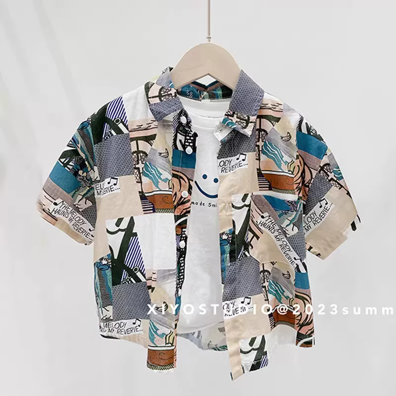 Phần giảm giá áo sơ mi ngắn tay cho bé trai, đồ đa năng mùa hè, số lượng có hạn, ai đến trước được trước.
