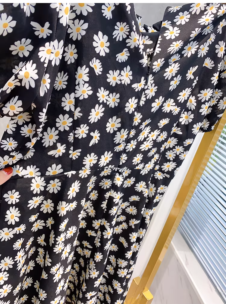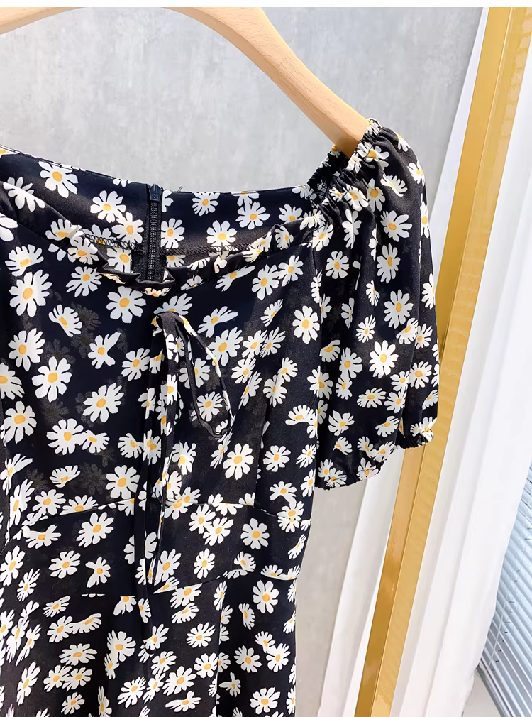 - Phần thân trên trông thon gọn và sành điệu~ Dễ dàng tạo vẻ đẹp cho bất cứ ai! Họa tiết hoa cúc Pháp~ Váy tay phồng dành cho nữ, kiểu ôm eo mùa hè.