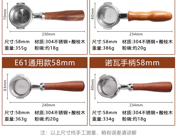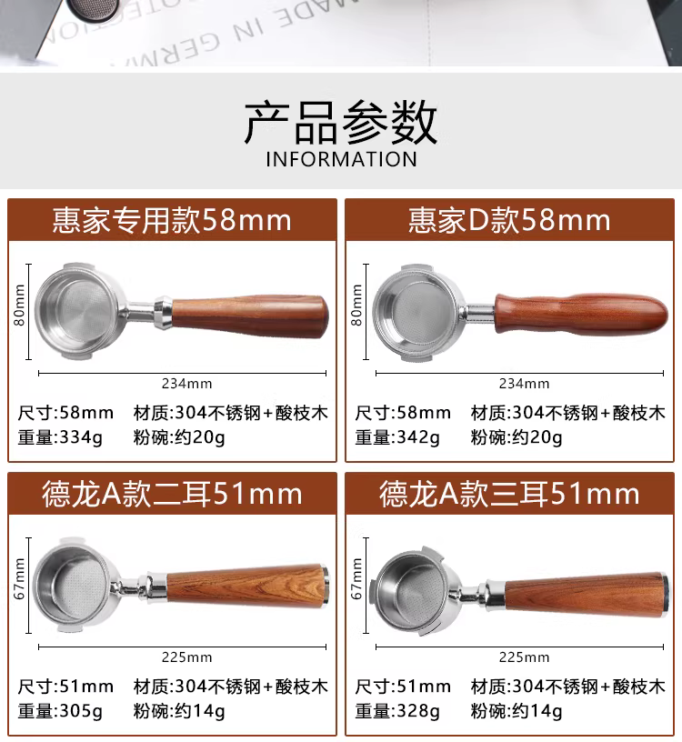 - Phễu lọc cà phê không đáy hai ly hai vòi đa năng dùng cho máy pha cà phê Huijia/Delonghi/Platinum/Geemile/Hot Mom/Aibo E61