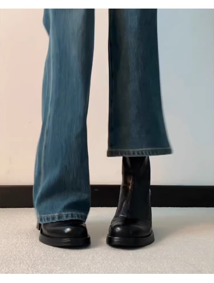 - Phiên bản da bò ~ Giày bốt cao gót thon gọn co giãn dành cho nữ, phong cách Pháp có khóa kéo phía sau, da thật, bốt ngắn đơn giản và đa năng.