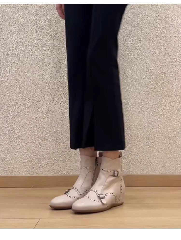 - Phiên bản da bò ~ Giày bốt cổ ngắn tăng chiều cao bằng da thật kiểu Pháp dành cho nữ, giày bốt mỏng có khóa kéo bên hông thời trang độc đáo