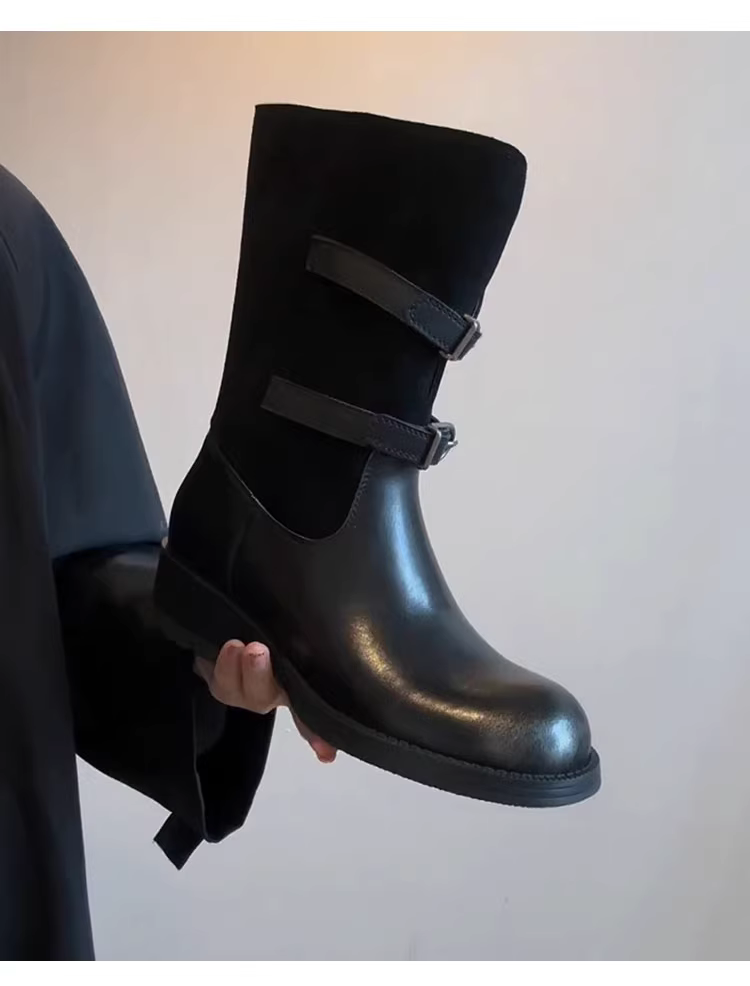 - Phiên bản da bò~ Giày bốt cưỡi ngựa kiểu Anh thời trang, da thật, phối màu, kiểu dáng thon gọn dành cho nữ, có khóa thắt lưng, gót dày, kiểu cổ điển, cao đến giữa bắp chân