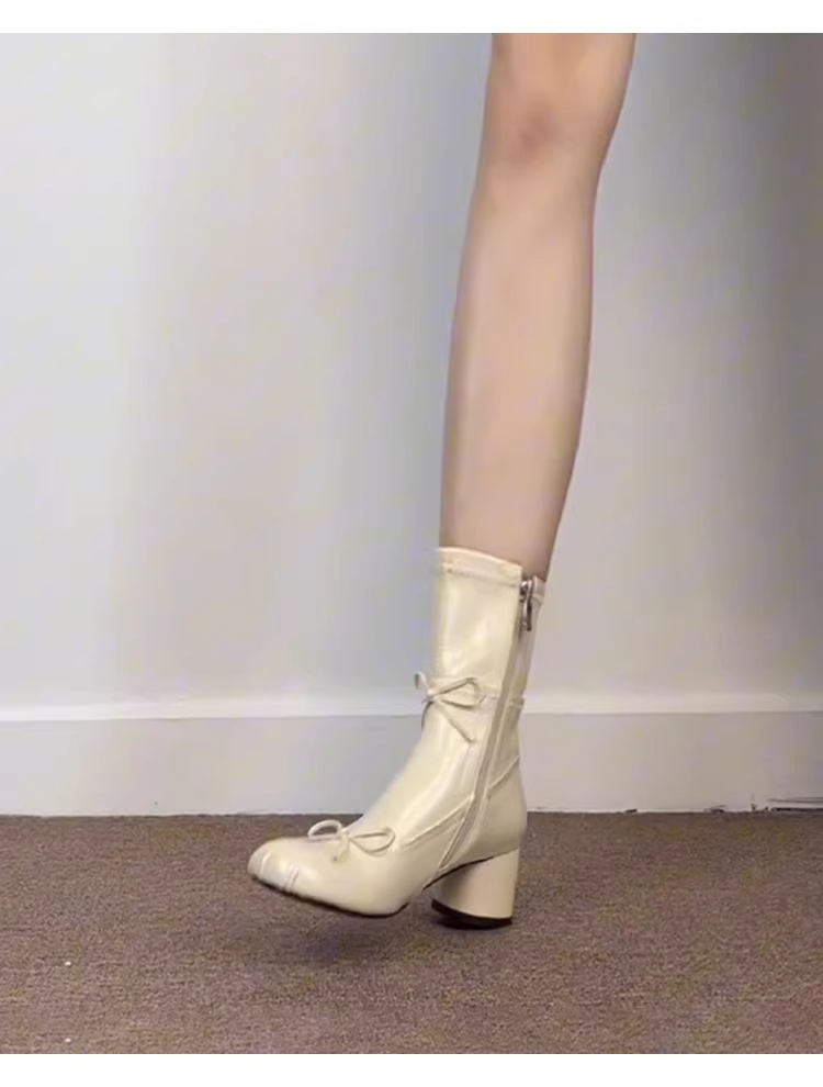 - Phiên bản da bò ~ Giày bốt dáng mảnh kiểu ba lê thanh lịch và dịu dàng theo phong cách Pháp dành cho nữ có khóa kéo phía sau, gót dày, giày bốt ngắn mũi tròn