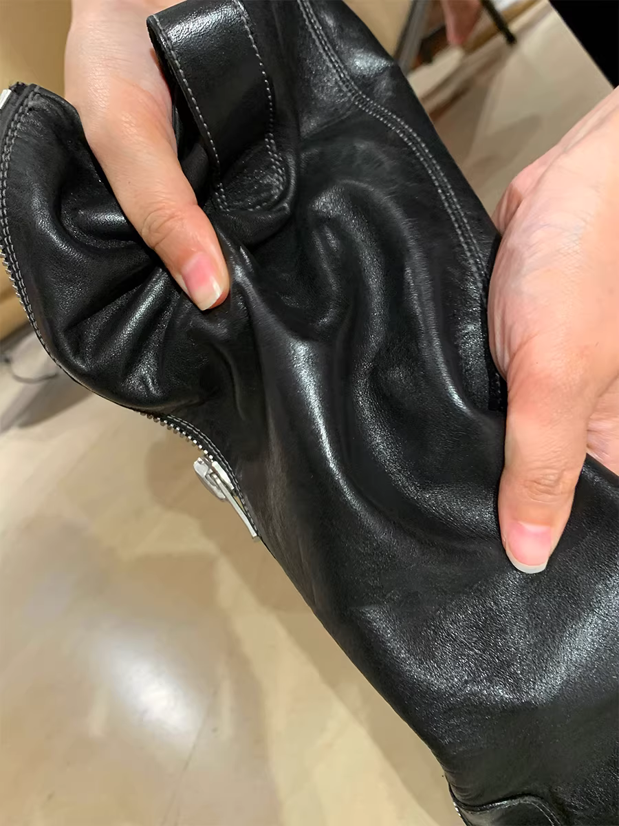 - Phiên bản da bò~ Giày bốt hiệp sĩ cao cổ kiểu Anh cổ điển, mũi tròn, đế dày, gót thô, dài qua đầu gối, có khóa kéo phía sau dành cho nữ