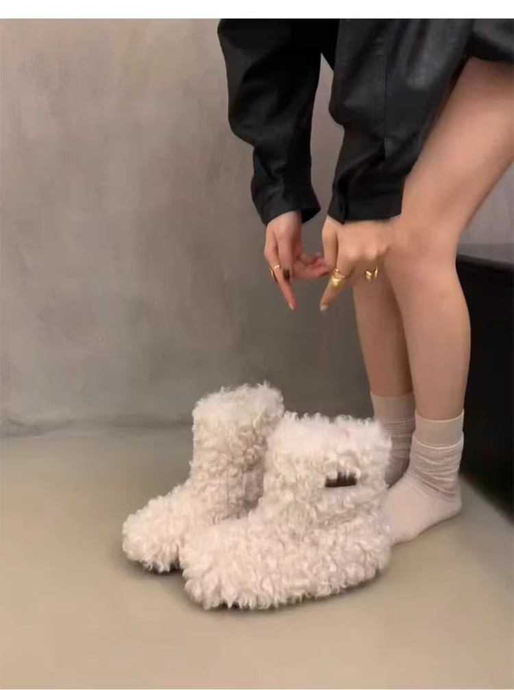 - Phiên bản da bò ~ Giày bốt lông mềm mại kiểu Pháp dành cho nữ với độ tăng chiều cao ẩn, mẫu mới độc đáo, giày bốt cotton ấm áp và thời trang cho mùa đông.