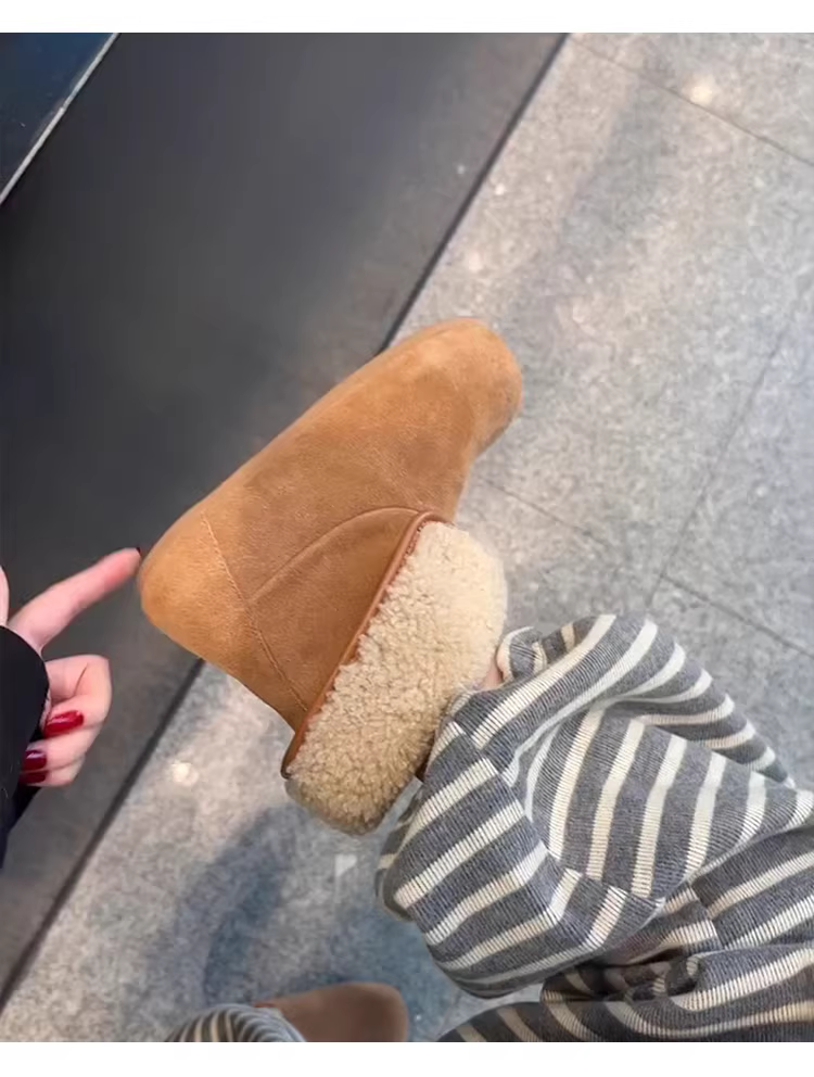 - Phiên bản da bò ~ Giày bốt ngắn sang trọng, ấm áp và giảm béo dành cho nữ, mũi tròn cổ điển đơn giản, giày bốt ngắn thời trang và đa năng