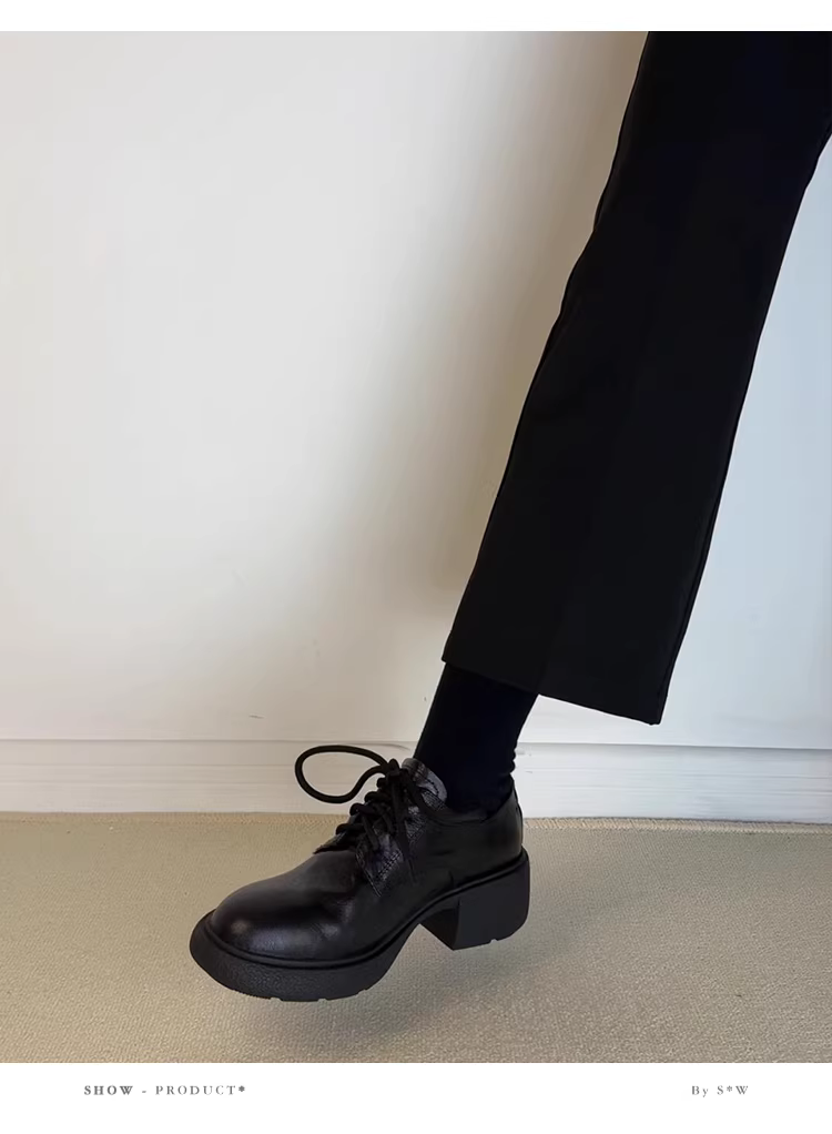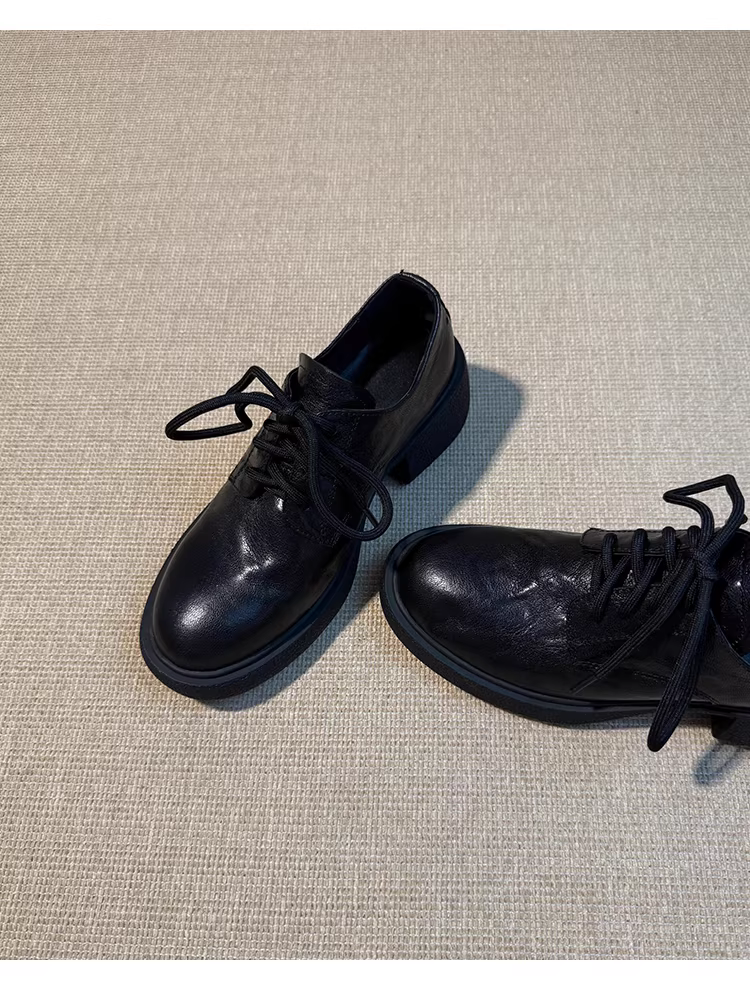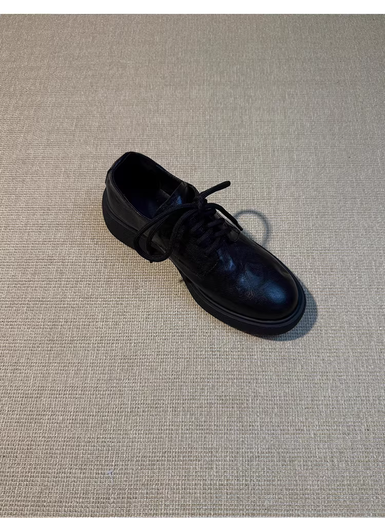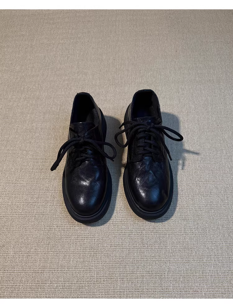 - Phiên bản da bò ~ Giày da nhỏ có dây buộc kiểu Anh dành cho nữ, giày da thật đa năng, đế lốp êm ái, mũi tròn, giày đi làm