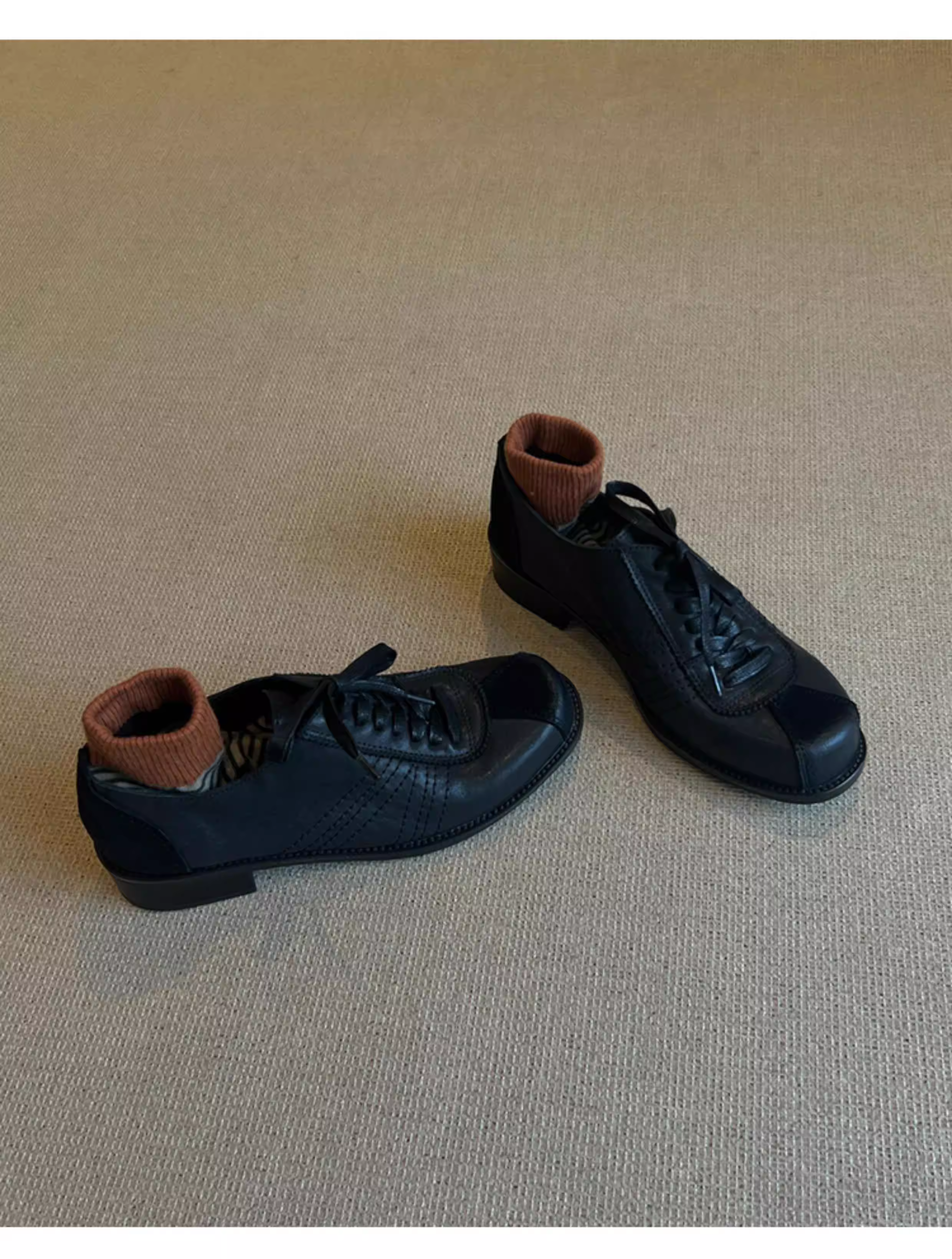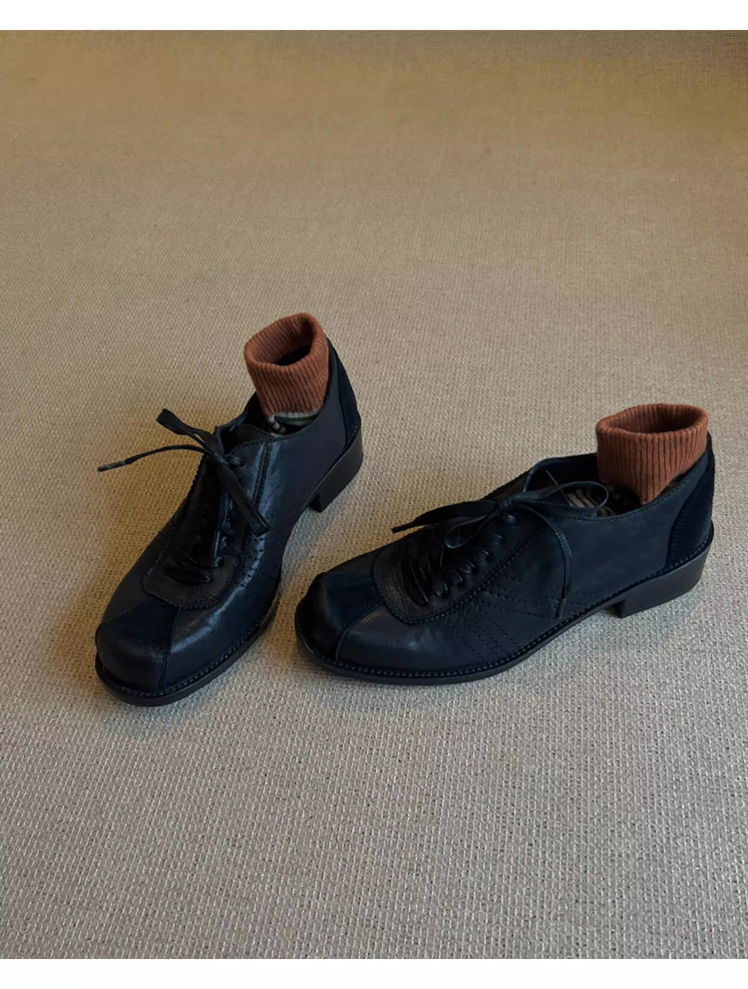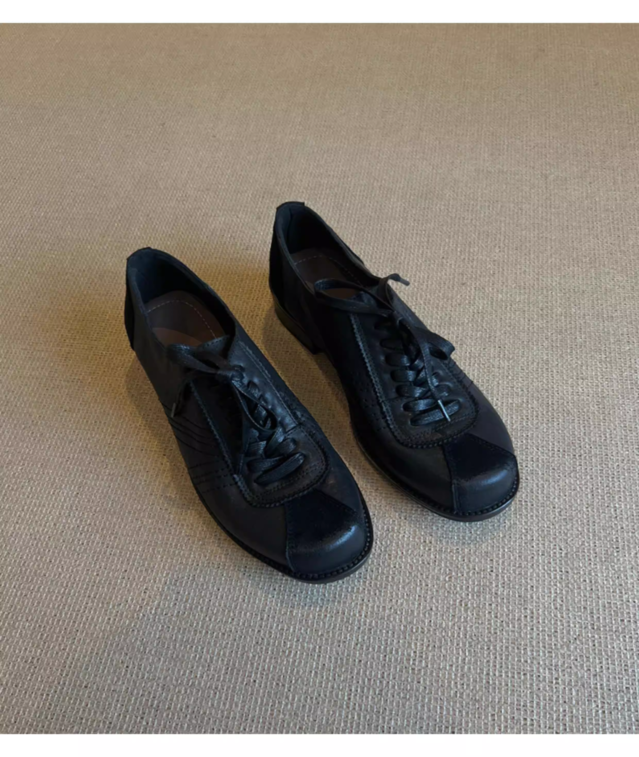 - Phiên bản da bò ~ Giày đế bằng da thật đế bằng phong cách retro đa năng dành cho nữ, giày lười kiểu Anh, giày da nhỏ buộc dây kiểu cũ.