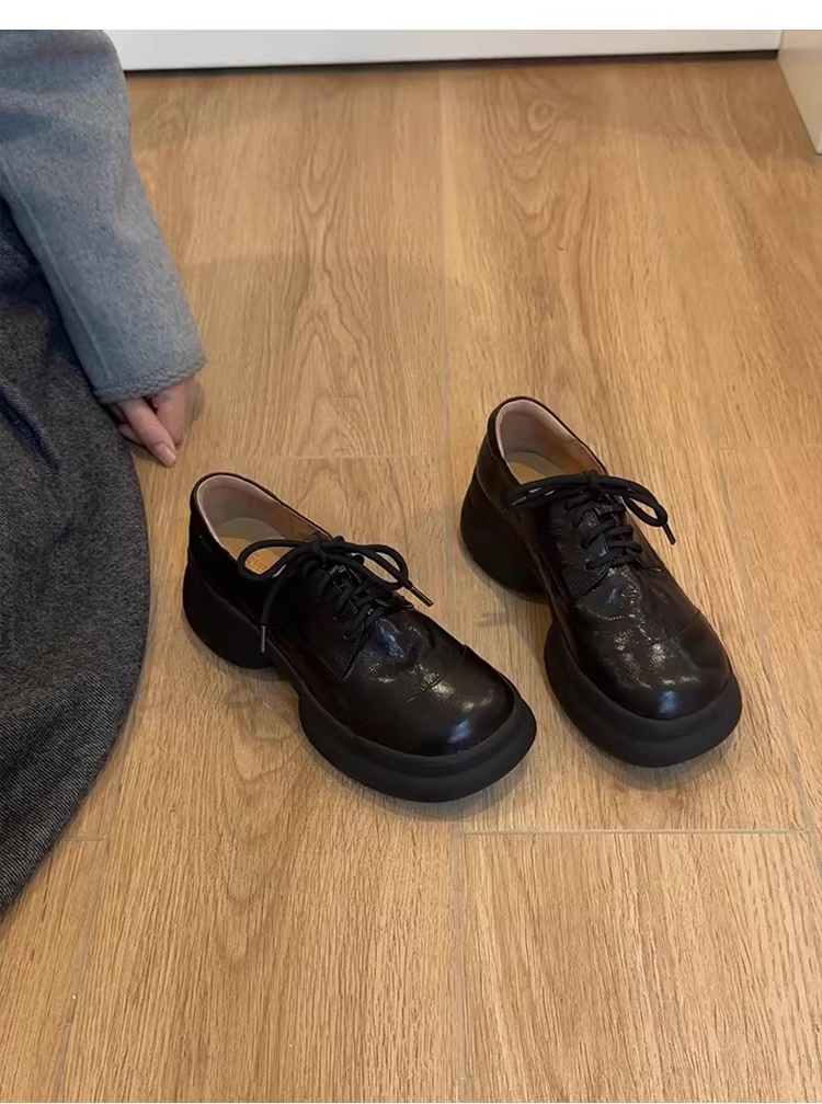 - Phiên bản da bò ~ Giày lười buộc dây cổ sâu bằng da thật đế dày đơn giản dành cho phụ nữ nhỏ nhắn, giày da đế xuồng kiểu Pháp hợp thời trang.