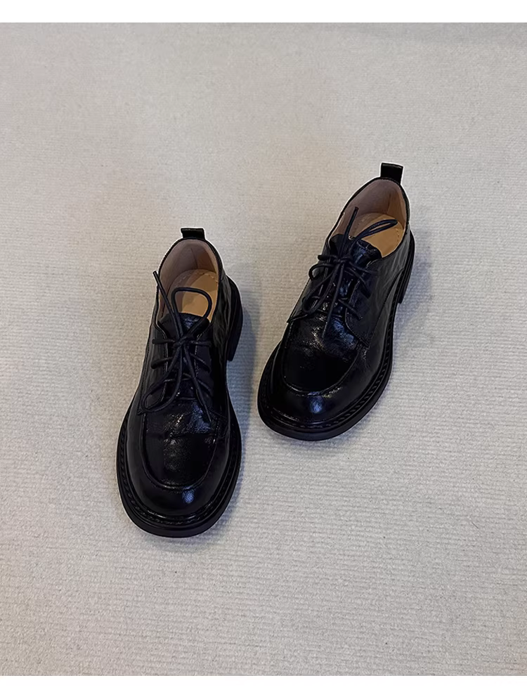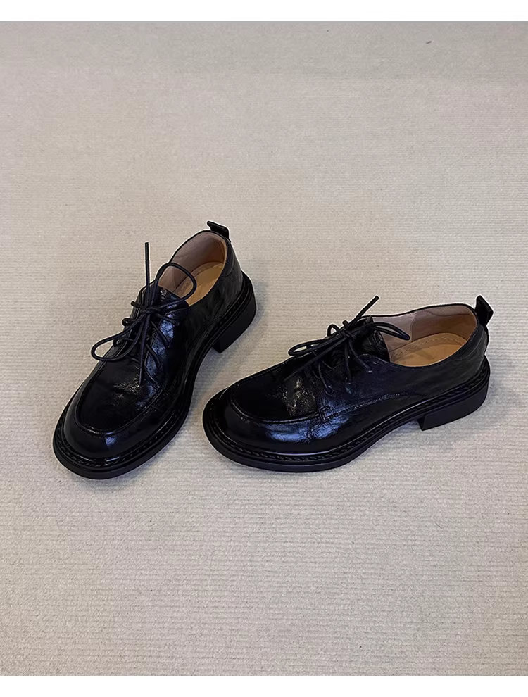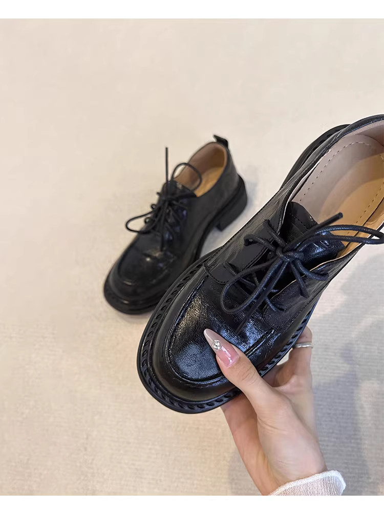 - Phiên bản da bò ~ Giày lười buộc dây da đã qua xử lý kiểu cổ điển dành cho nữ, giày đi làm đế thấp đa năng phong cách Anh.