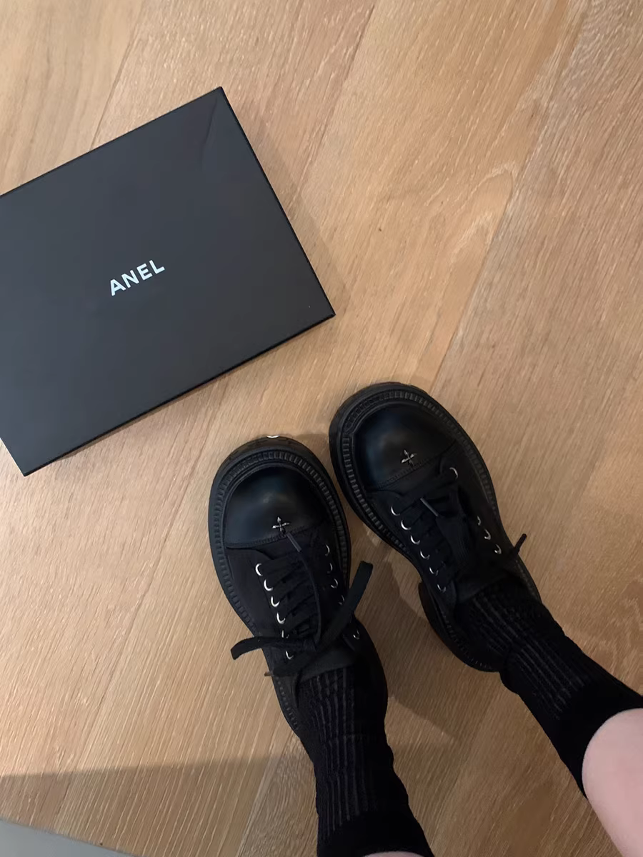 - Phiên bản da bò ~ Giày mũi tròn buộc dây cổ điển bằng da thật dành cho nữ, giày da nhỏ đế dày bằng vải canvas chắp vá phong cách Anh quốc giản dị