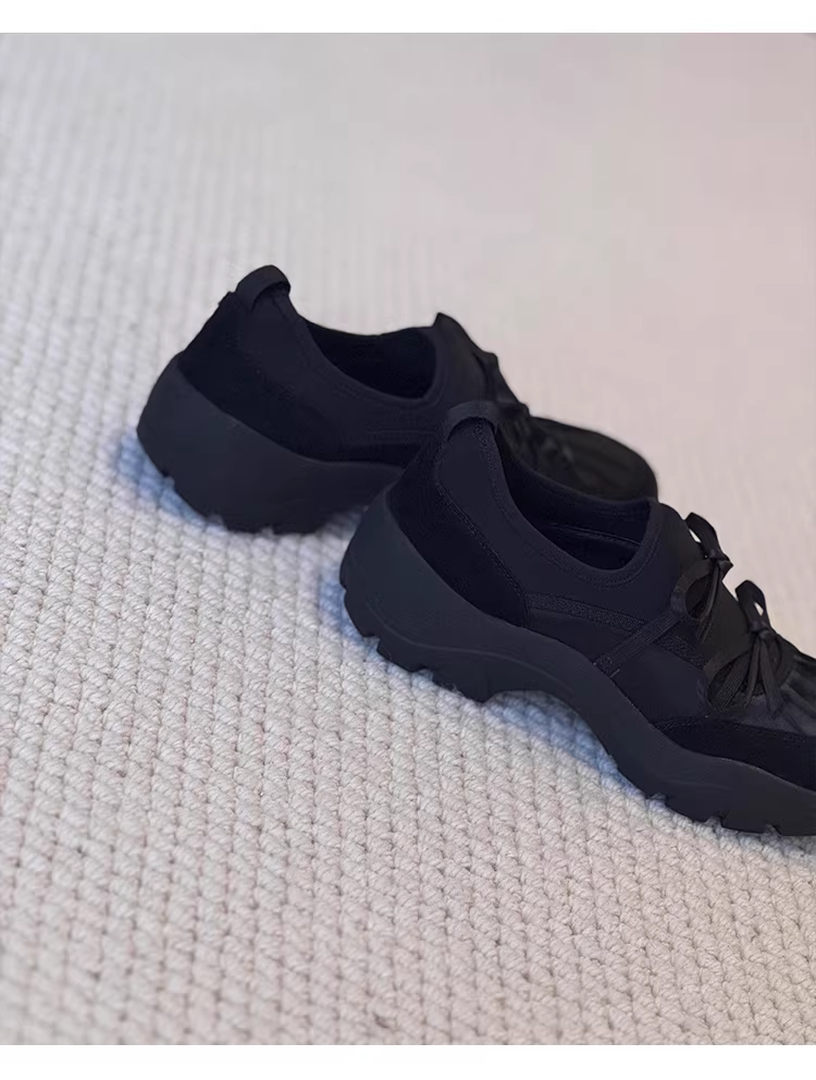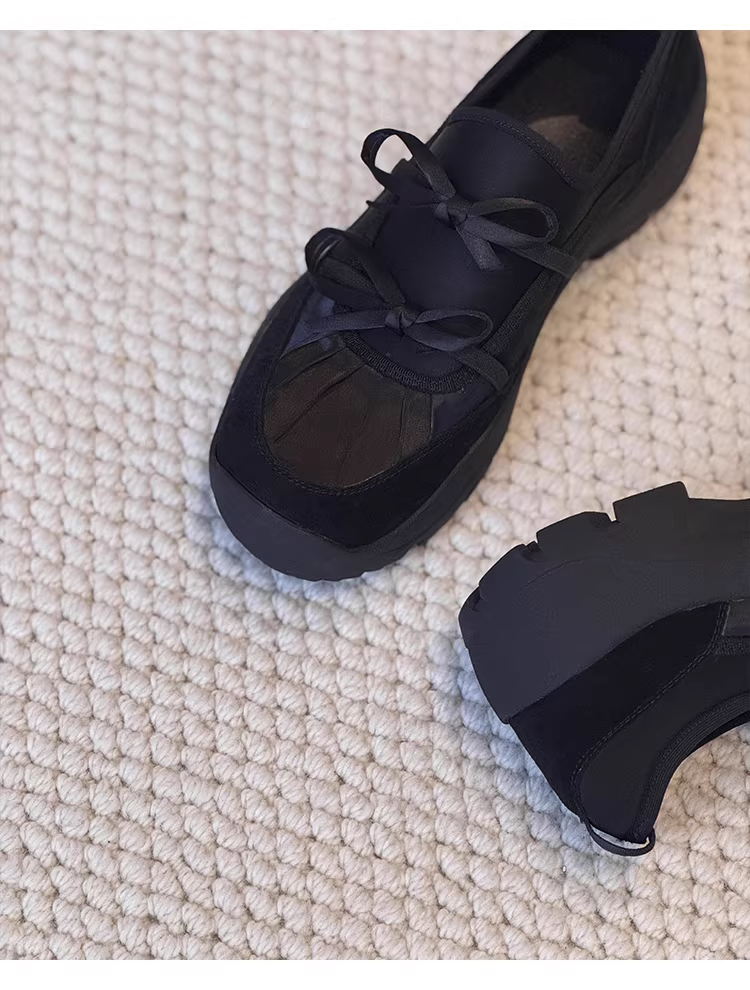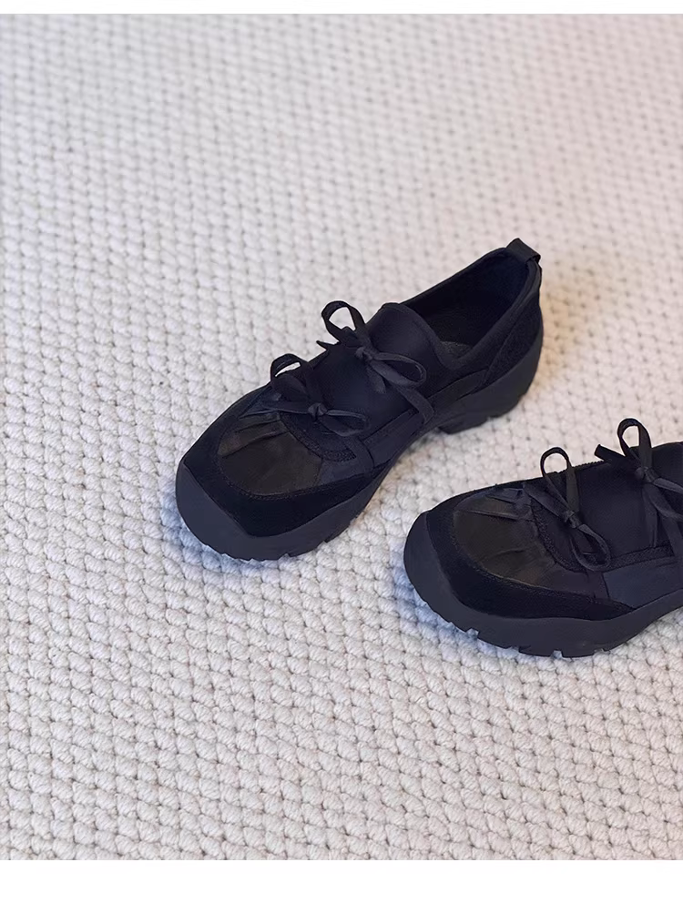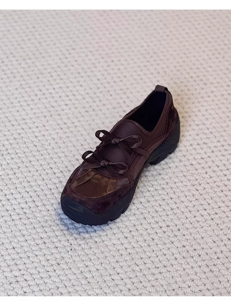 - Phiên bản da bò~Giày lười cổ điển kiểu ballet dành cho nữ, giày thể thao đế dày có nơ bằng da lộn kiểu dáng thể thao đế dày