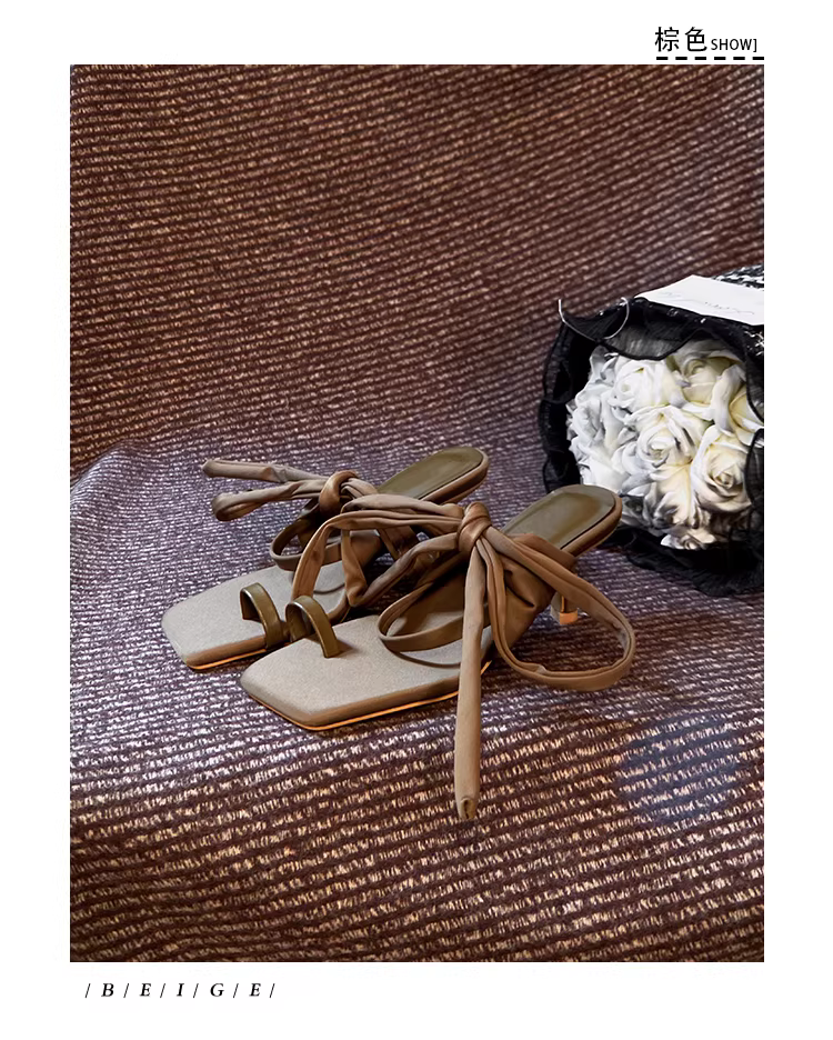 Phiên bản da cừu ~ Dép cao gót mũi vuông dành cho nữ, trang phục mùa hè, phong cách cổ tích, gót nhọn cao cấp, dép La Mã có quai