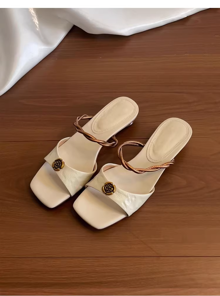 - Phiên bản da cừu ~ Dép xỏ ngón da thật kiểu retro mới dành cho nữ, dép xỏ ngón đế thấp hoa trà đa năng, kiểu dáng mở mũi