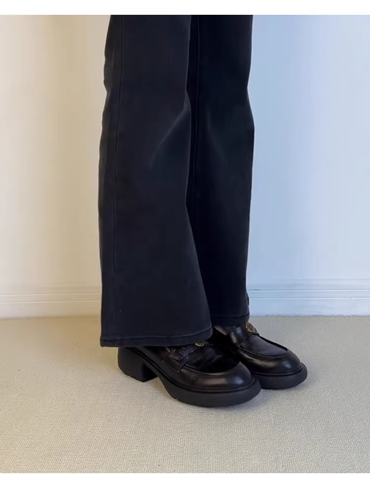 Phiên bản da cừu ~ Giày âm nhạc êm ái đế dày dành cho nữ, giày đi làm đa năng hoa trà, giày da nhỏ kiểu cổ điển kiểu dáng retro bằng da thật