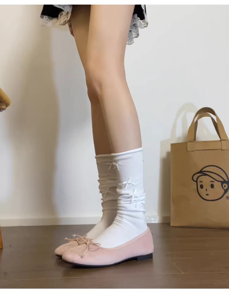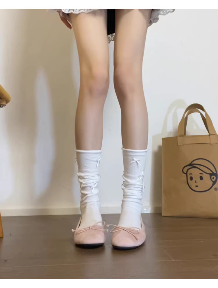 Phiên bản da cừu ~ Giày ba lê mũi tròn nông dành cho nữ với nơ nhẹ nhàng, giày đế bằng da lộn kiểu dáng dạ hội dễ mang