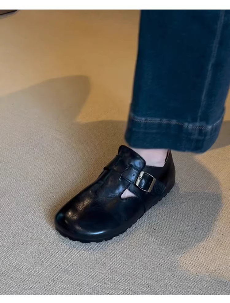 Phiên bản da cừu ~ Giày Birkenstock da thật dành cho nữ, giày da nhỏ kiểu Anh cổ điển có khóa thắt lưng, giày lười thông thường kiểu dáng đơn giản