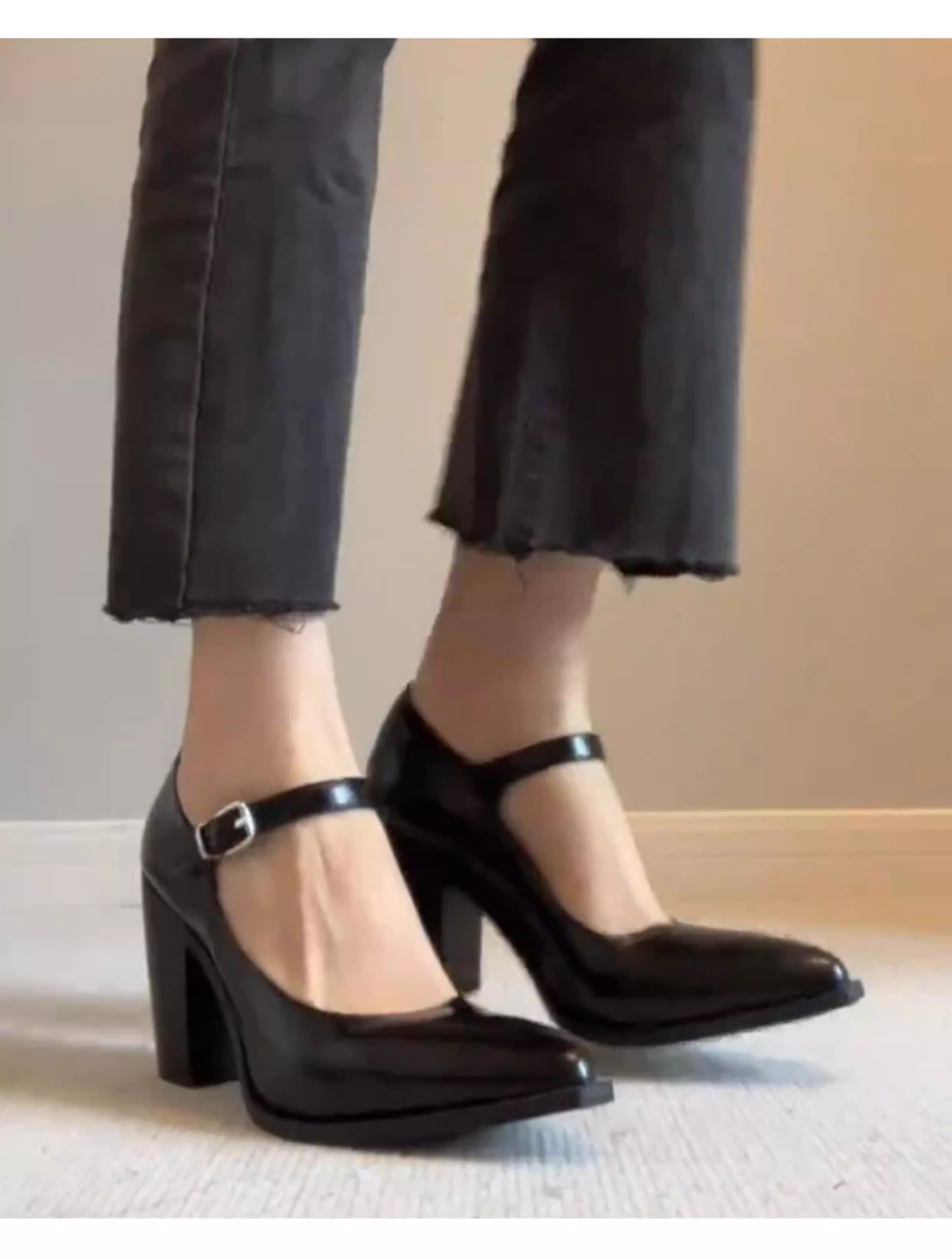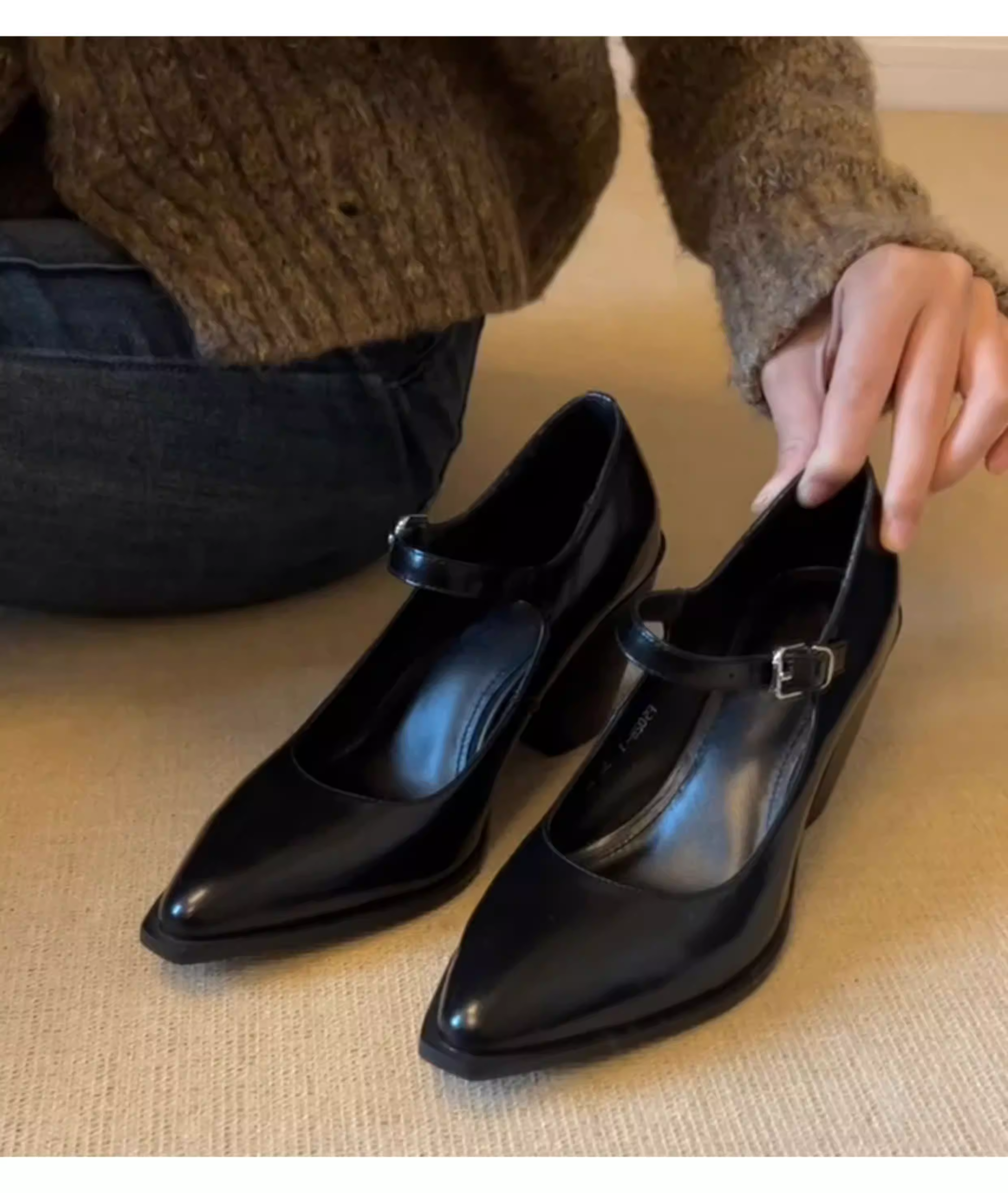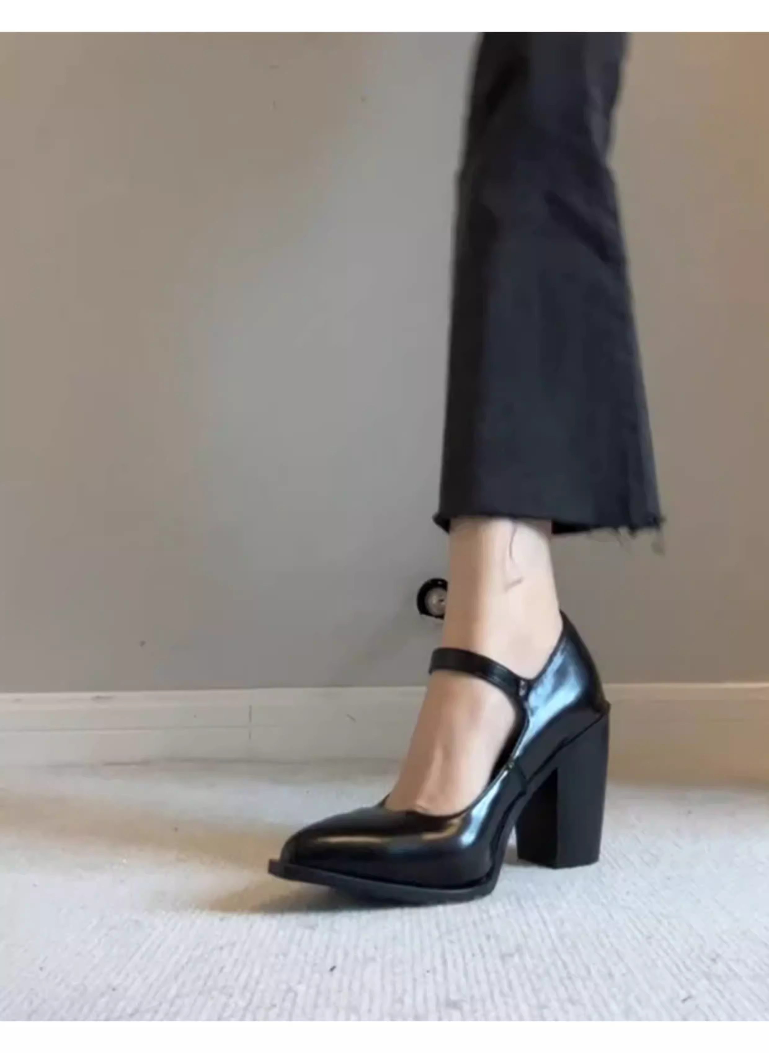 - Phiên bản da cừu ~ Giày cao gót cổ điển kiểu Pháp dành cho nữ, mũi nhọn thon gọn, giày đơn da thật thanh lịch, dây đeo mắt cá chân, giày da màu đen