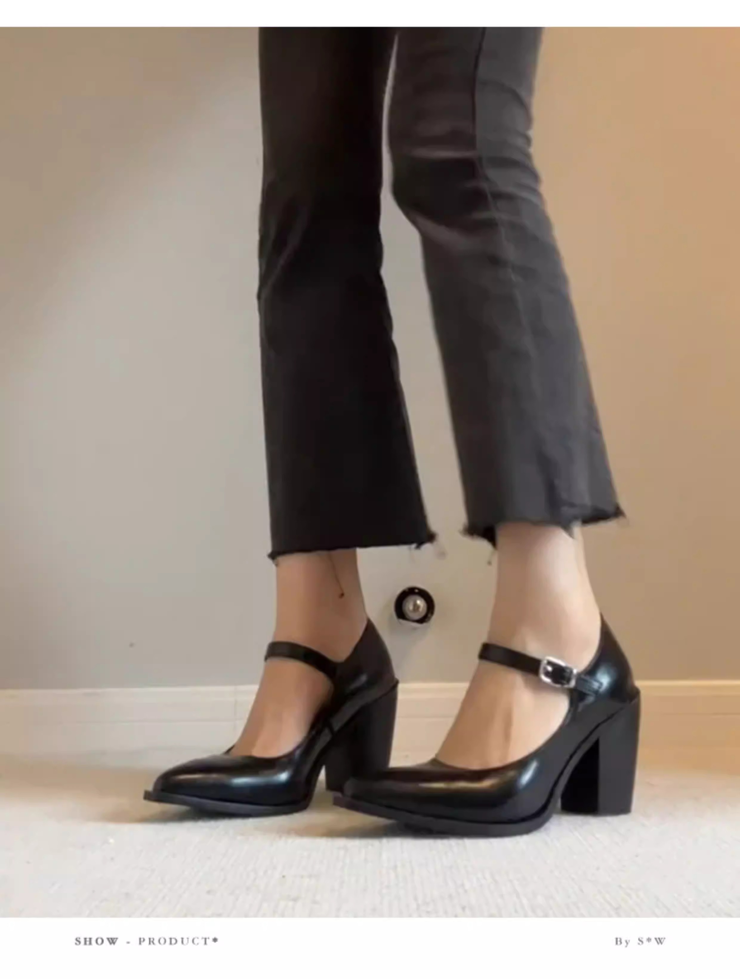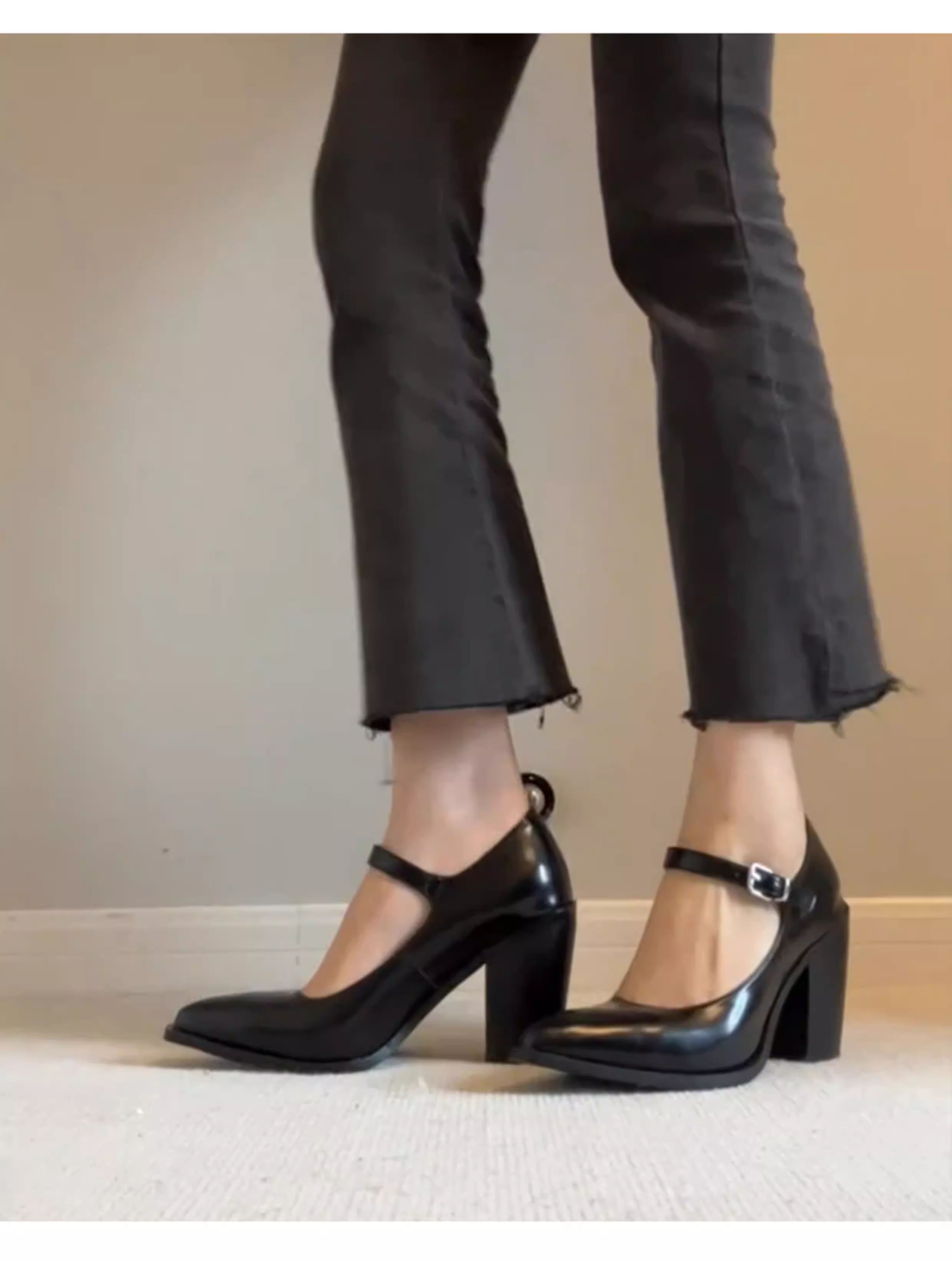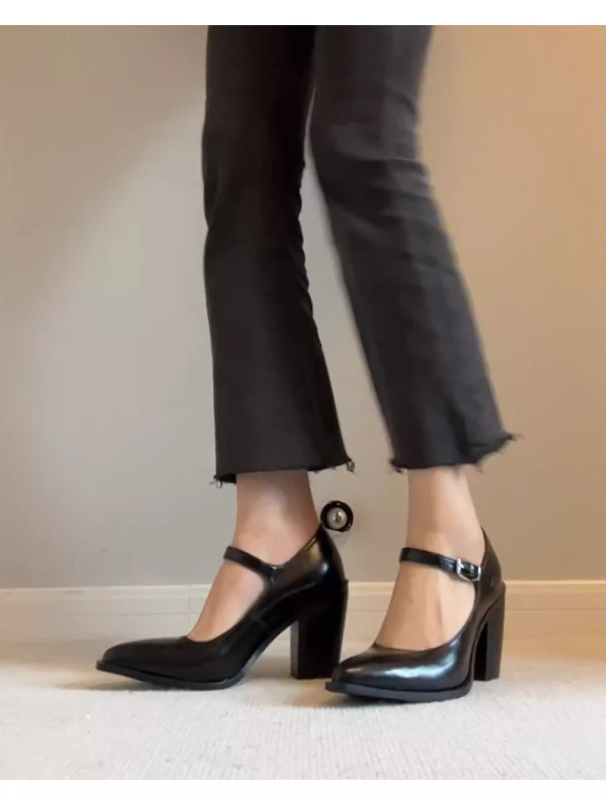 - Phiên bản da cừu ~ Giày cao gót cổ điển kiểu Pháp dành cho nữ, mũi nhọn thon gọn, giày đơn da thật thanh lịch, dây đeo mắt cá chân, giày da màu đen