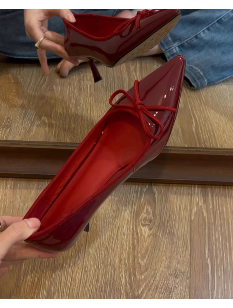 - Phiên bản da cừu ~ Giày cao gót mũi nhọn bằng da sáng chế thanh lịch dành cho nữ, giày cao gót đi làm mũi nông phong cách Pháp