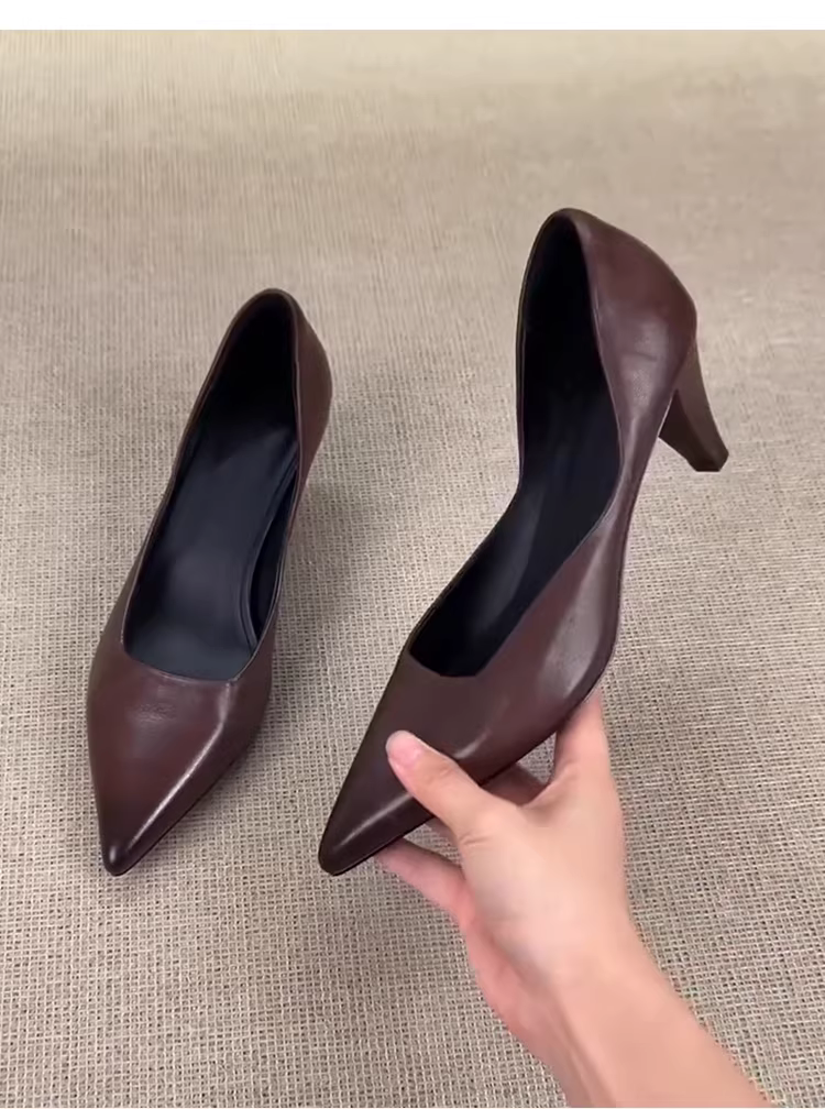 - Phiên bản da cừu ~ Giày cao gót mũi nhọn kiểu dáng cổ điển, da thật cao cấp, tối giản và sang trọng, đa năng dành cho nữ
