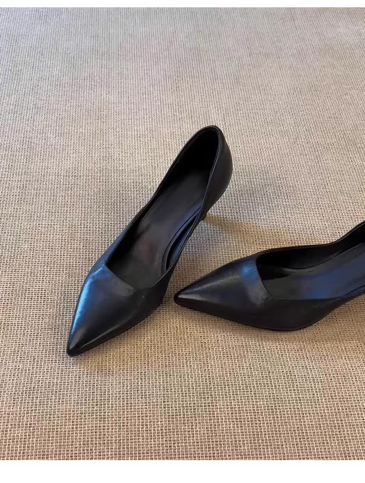 Phiên bản da cừu ~ Giày cao gót mũi nhọn kiểu dáng cổ điển, da thật cao cấp, tối giản và sang trọng, đa năng dành cho nữ