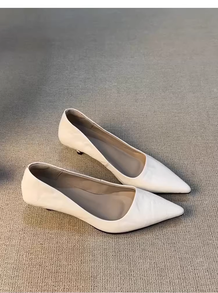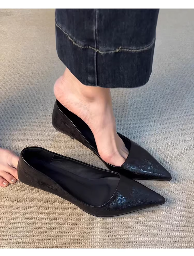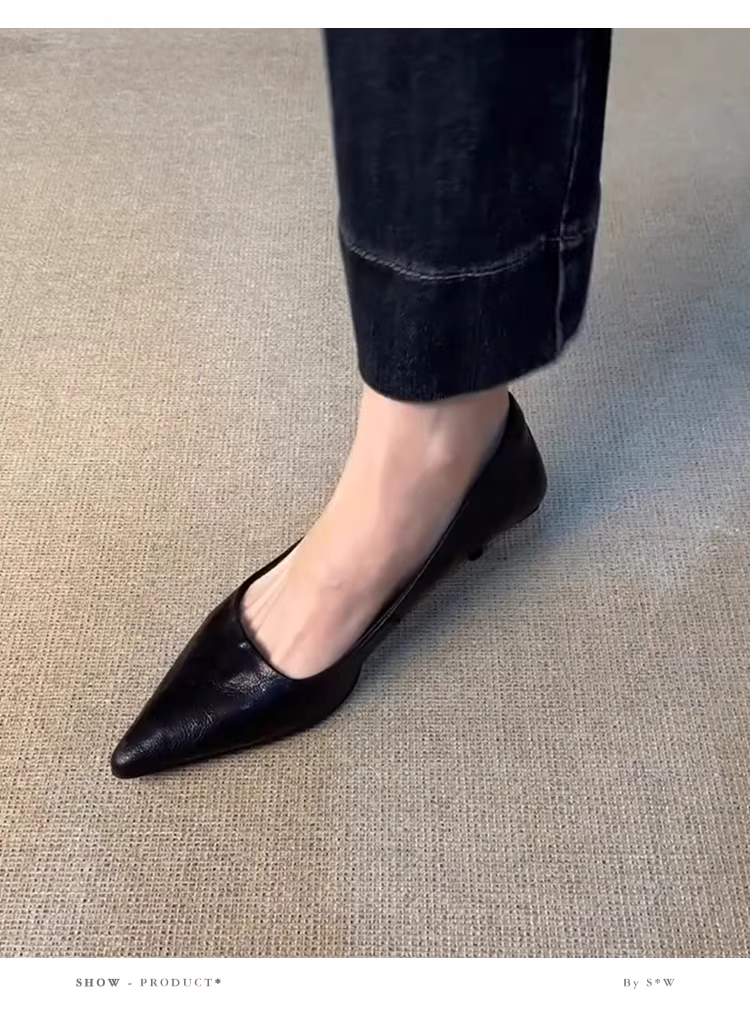 - Phiên bản da cừu ~ Giày cao gót nữ phong cách Pháp nhẹ nhàng và đa năng, mũi nhọn nông, giày công sở thanh lịch, giày bệt đi làm kiểu slip-on.