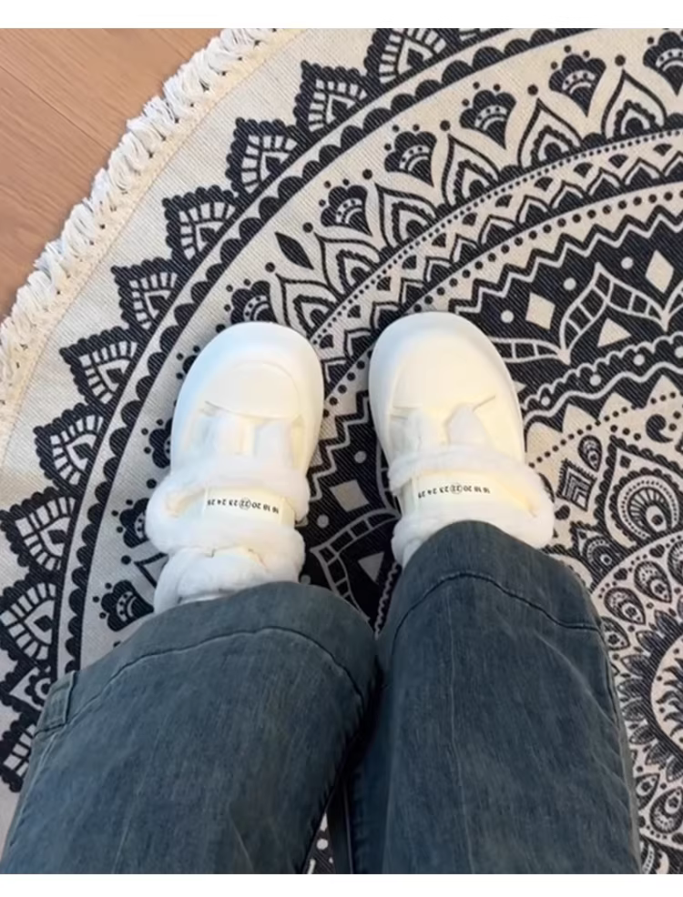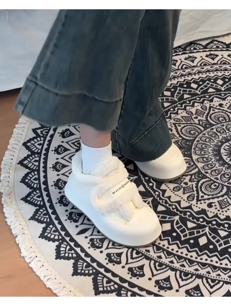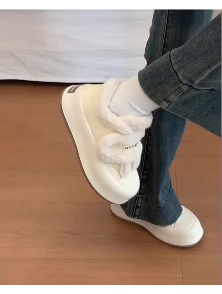 - Phiên bản da cừu ~ Giày cotton ấm áp bằng len cừu dành cho nữ có khóa dán, đế dày, giày trắng lót lông cừu, giày mềm mại và giản dị