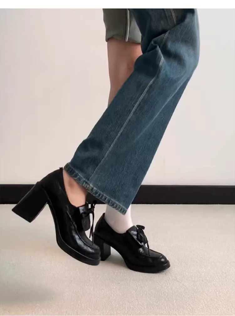 - Phiên bản da cừu ~ Giày da buộc dây kiểu dáng nhỏ gọn, kiểu Anh, giày lười da thật cao gót thanh lịch dành cho nữ