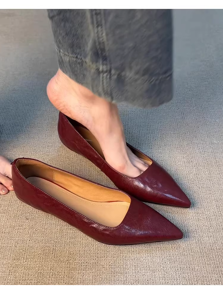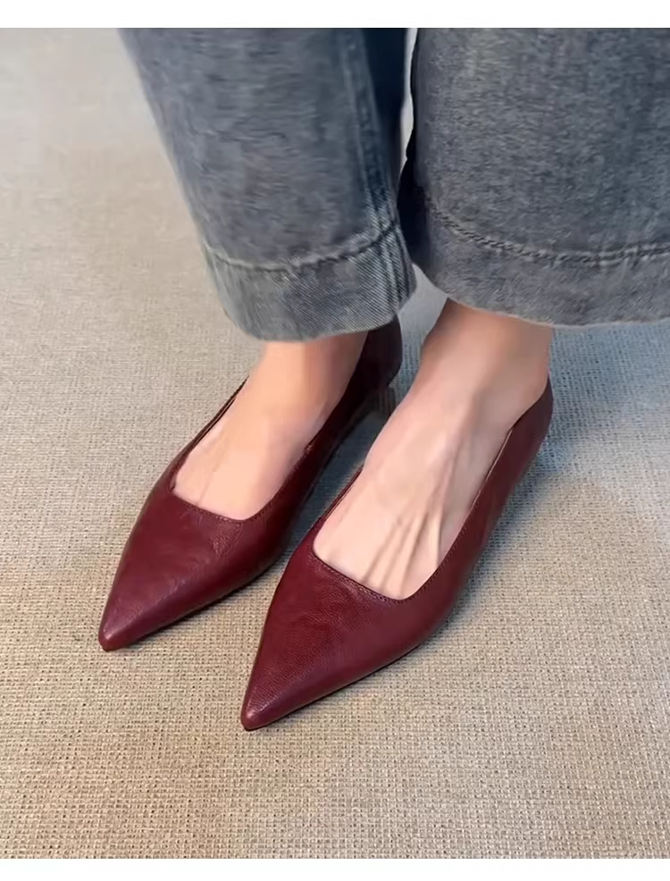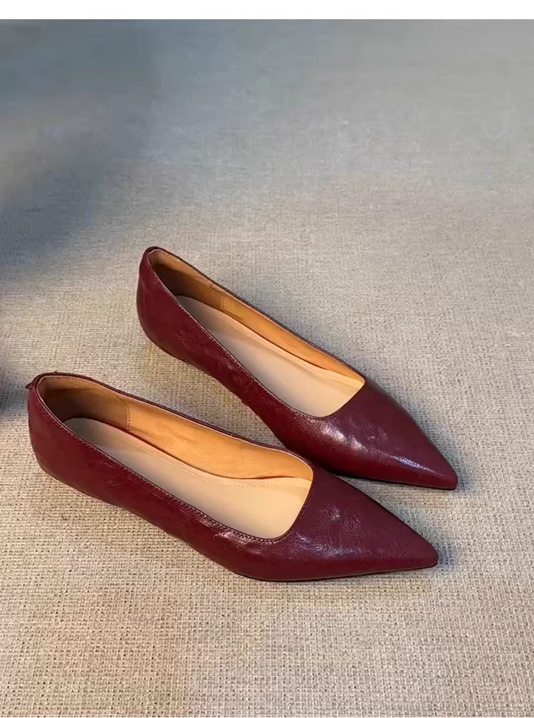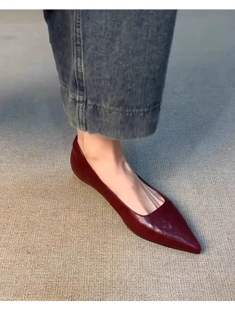 - Phiên bản da cừu ~ Giày da đế thấp đi làm mũi nhọn, giày công sở thanh lịch, giày nữ kiểu dáng cổ điển, mũi nông, kiểu lười