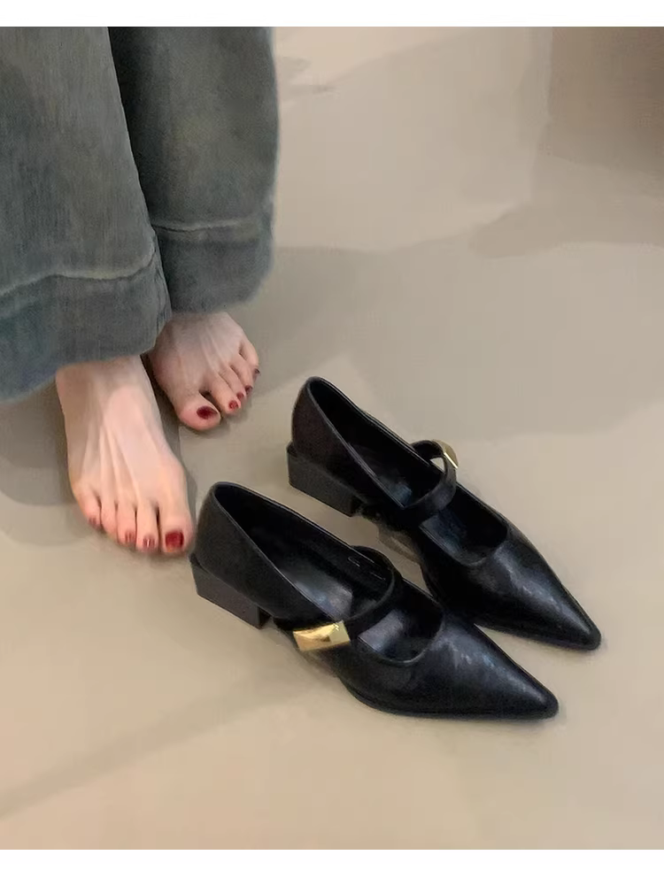- Phiên bản da cừu ~ Giày da đơn giản và đa năng dành cho nữ đi làm, giày đơn giản dị, thanh lịch với mũi nhọn và miệng giày nông, giày Mary Jane.
