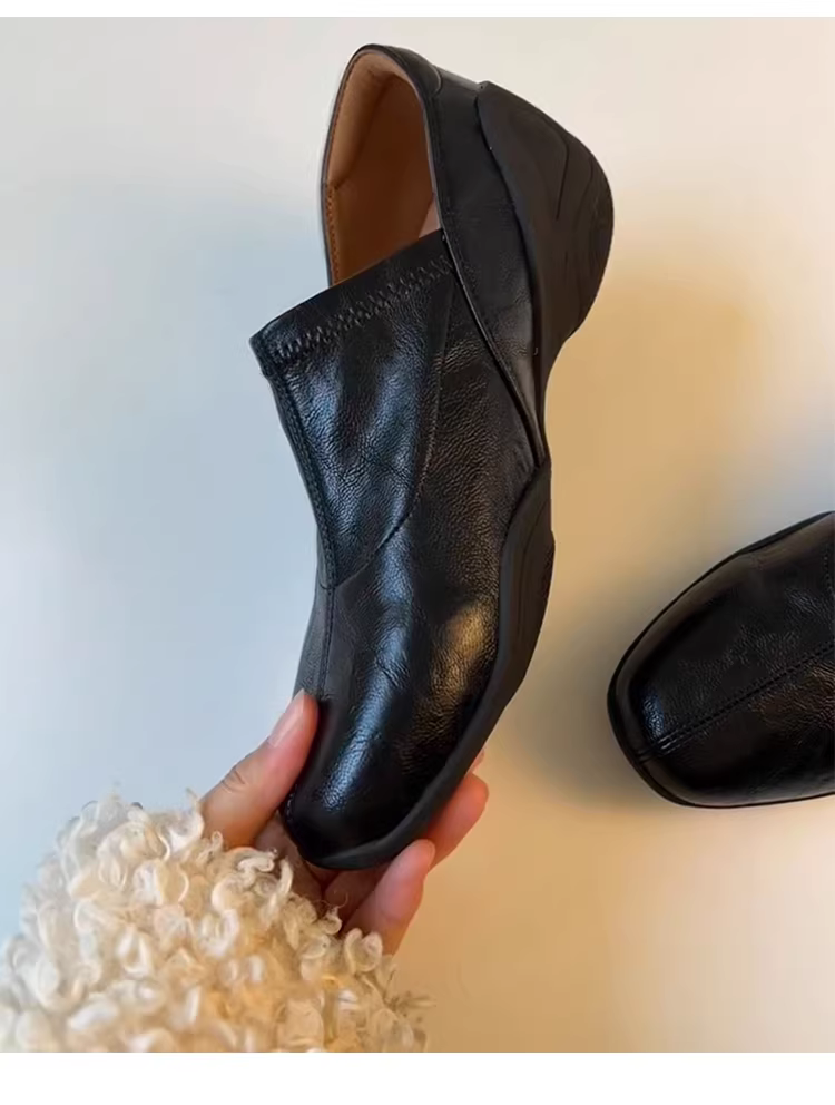 - Phiên bản da cừu ~ Giày da mềm đế mềm, thoải mái, kiểu dáng cổ điển, màu đen, kiểu lười, chất liệu da thật dành cho nữ
