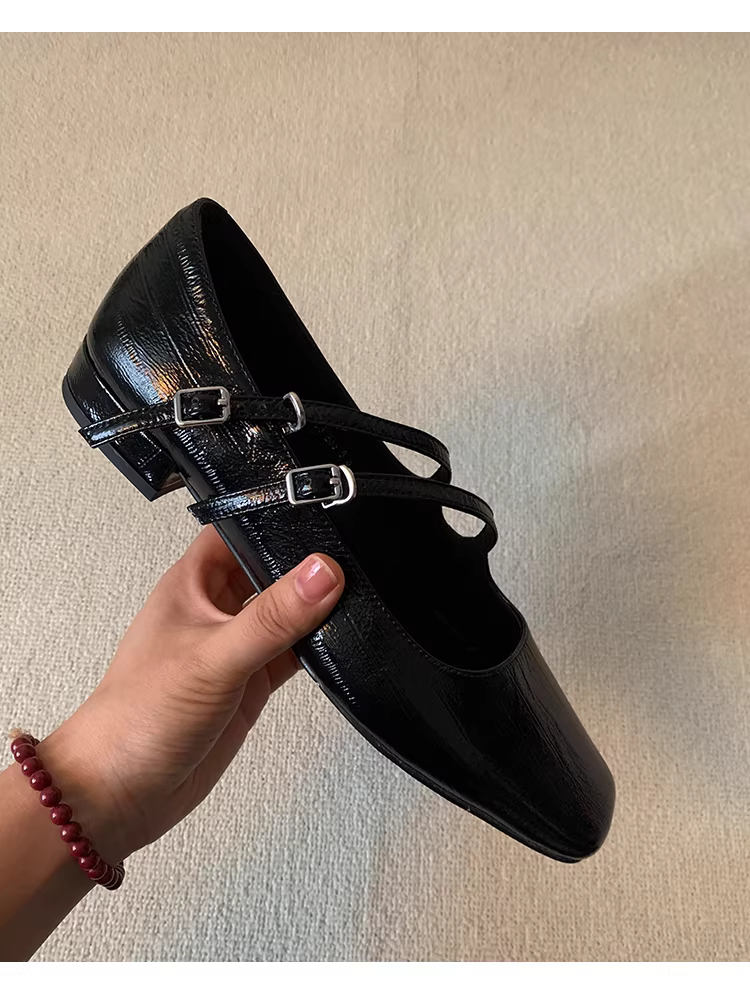 - Phiên bản da cừu ~ Giày da nhỏ có quai đôi mũi vuông thiết kế độc đáo, đơn giản và đa năng, gót dày, giày nữ đi làm kiểu Mary Jane