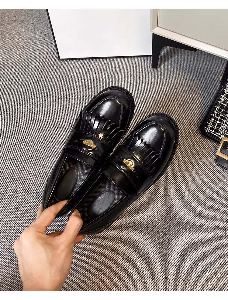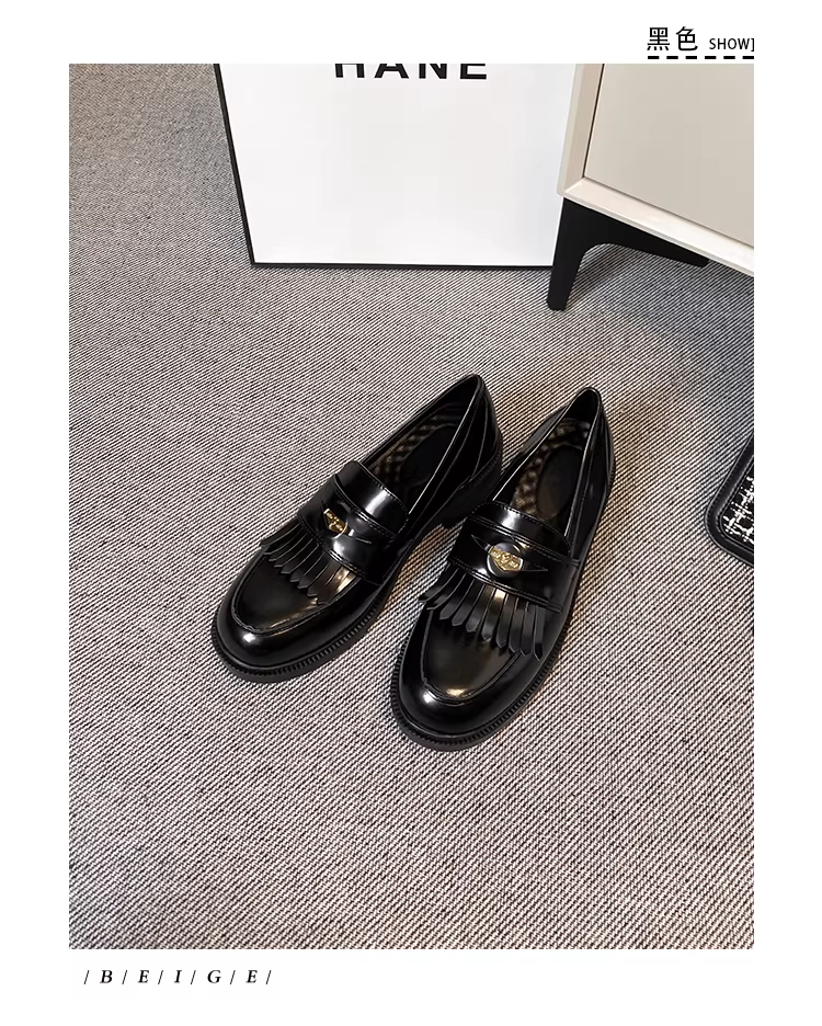 Phiên bản da cừu~ Giày da nhỏ kiểu Anh có tua rua dành cho nữ, giày đơn mũi tròn cổ điển, giày lười da thật, giày lười JK