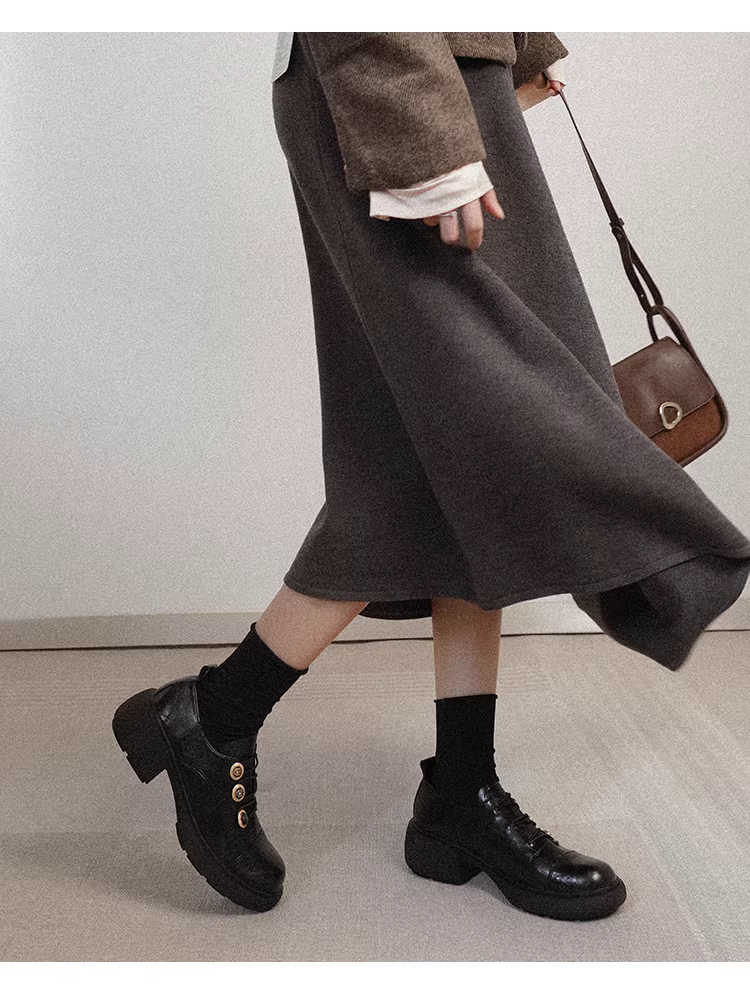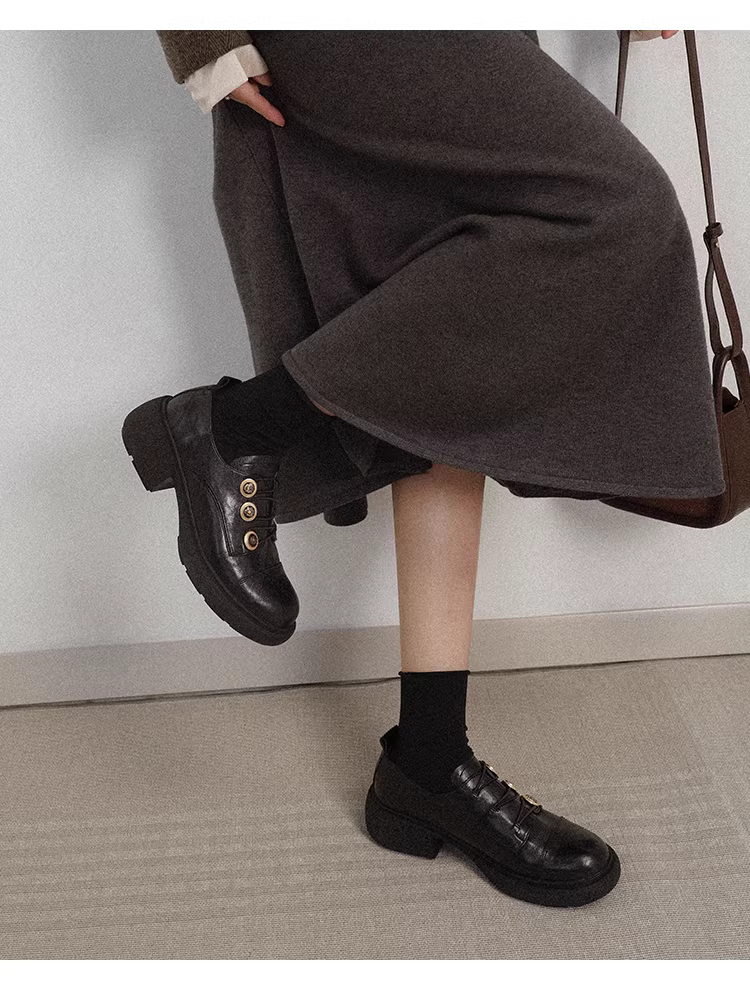 - Phiên bản da cừu ~ Giày da nhỏ kiểu Anh thiết kế độc đáo dành cho nữ, mũi tròn, gót dày, đế dày, kiểu lười JK