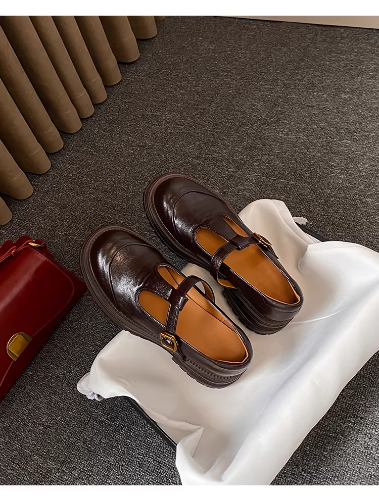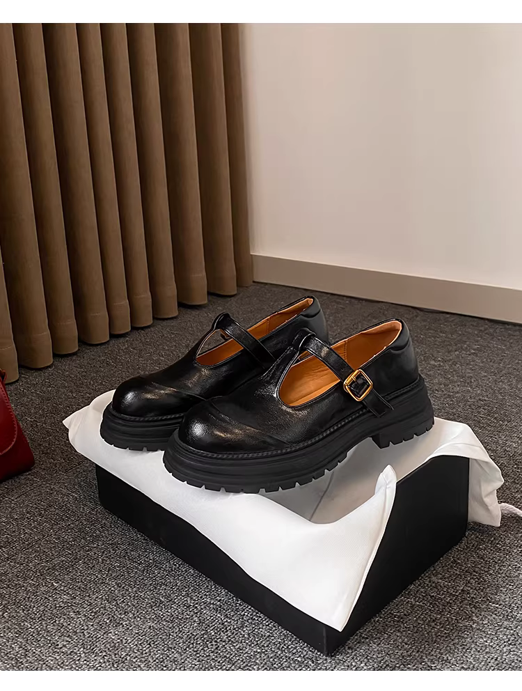 - Phiên bản da cừu ~ giày da nhỏ kiểu cổ điển đơn giản có khóa chữ T, mũi tròn rỗng, giày lười đế dày bằng da thật