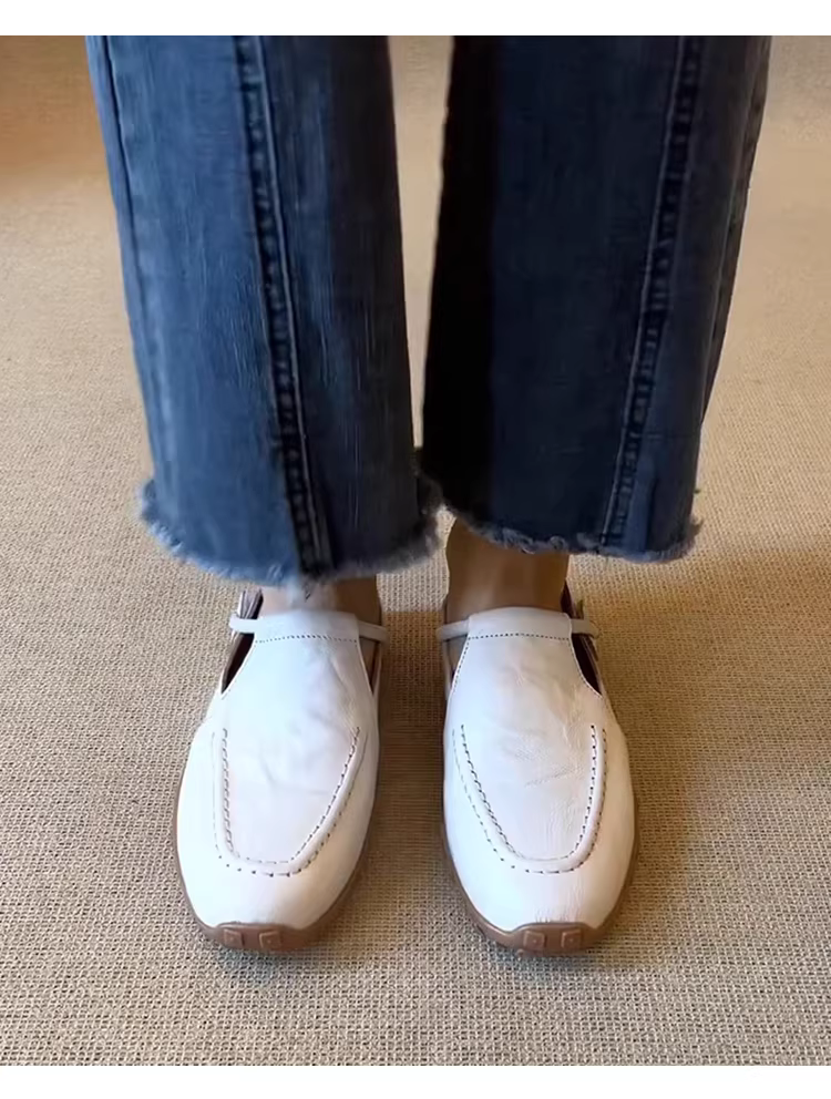 Phiên bản da cừu ~ giày da nữ đế mềm thoải mái, phong cách Anh, kiểu lười có khóa dán, giày Mary Jane đi làm