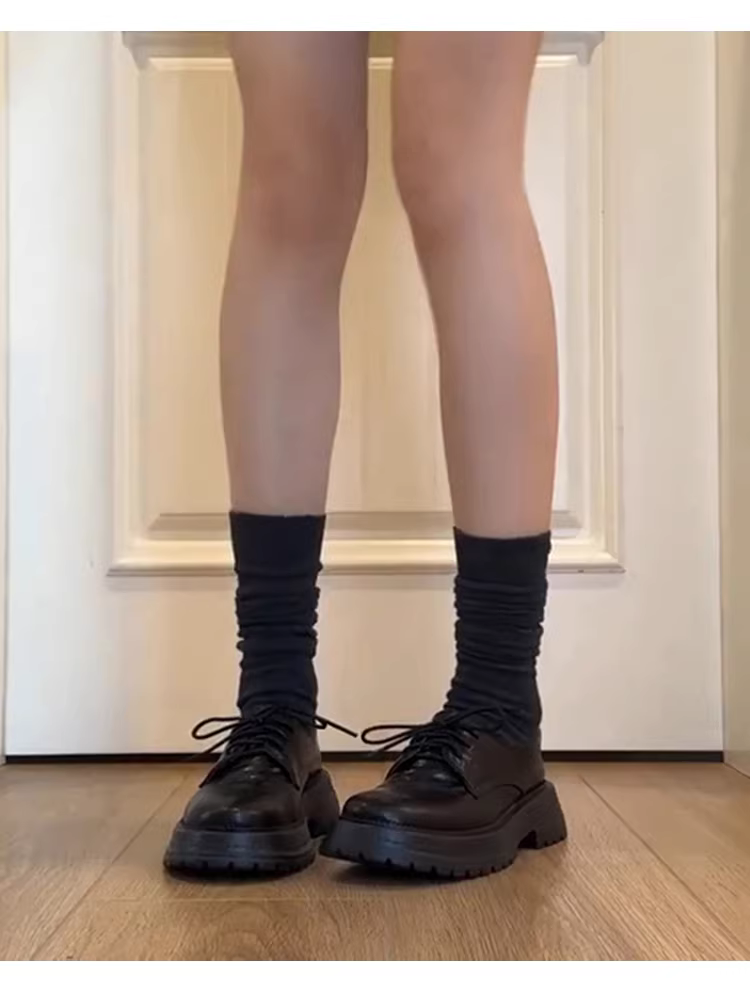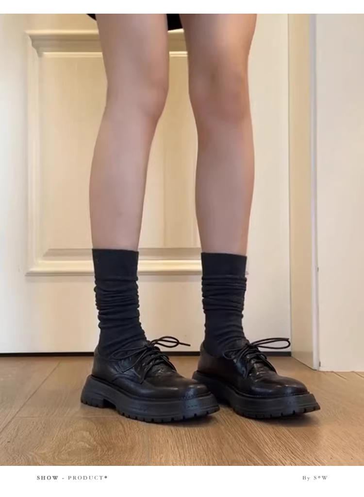 Phiên bản da cừu ~ Giày da nữ phong cách Anh quốc, đế dày, buộc dây, kiểu dáng cổ điển, da thật, đa năng