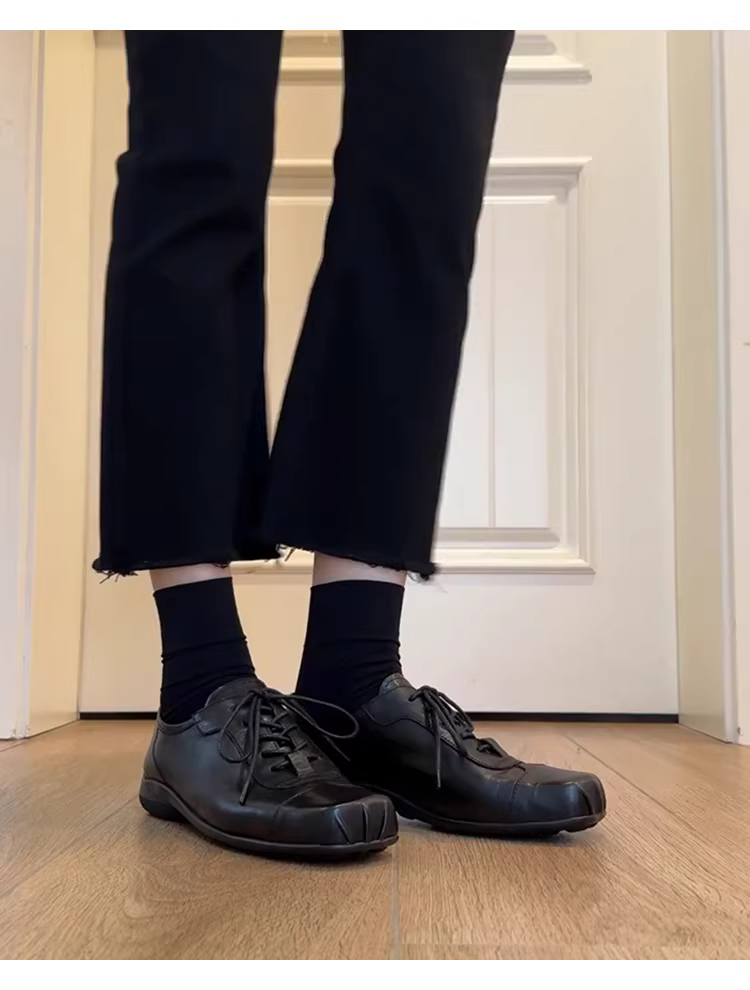 - Phiên bản da cừu ~ Giày da thật có dây buộc mũi vuông cổ điển dành cho nữ, giày tập luyện kiểu ba lê đa năng kiểu Đức, giày da nhỏ thời trang